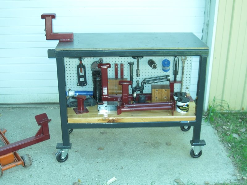 I think that how easy this rolls, even with a complete axle on it, is fantastic. You can easily roll it out of the way if needed and the when the brakes are applied it is solid. The best part is that once you are finished with the axle this is a solid, moveable, steel-topped bench. Here are a couple more photos of the tooling (the last ones, I promise).