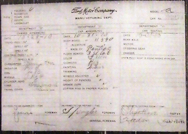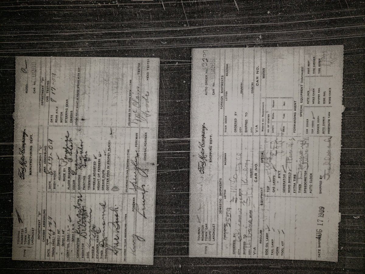The 1908 sheet was fairly brief compared to this one from 1910. This is the 1910 front side, the back side of each build sheet of these later contain the shipping info.