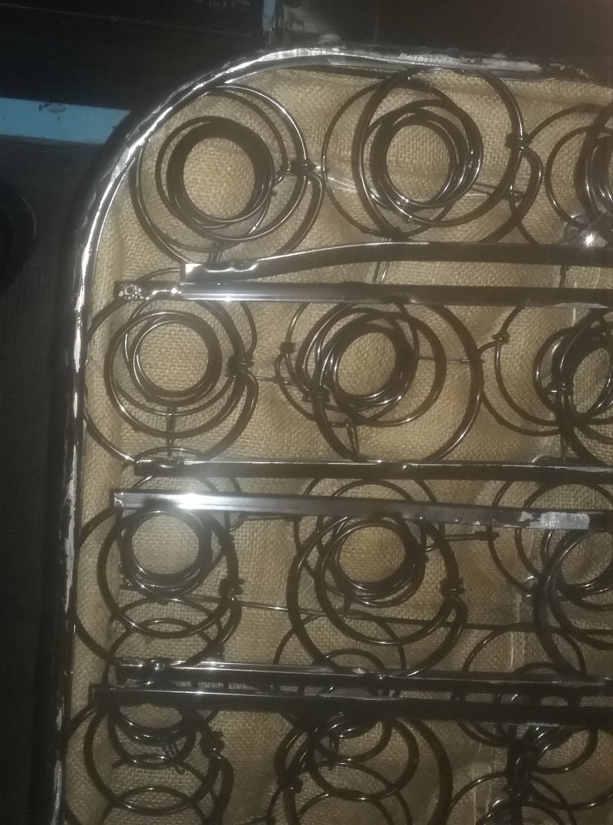 I assume this is the reason why Classtique suggests using hog ring affixed canvas as the barrier between the cotton and springs. This is my original seat and you can see where the burlap worked its way through the coils. The stretched canvas would prevent this from happening over time.