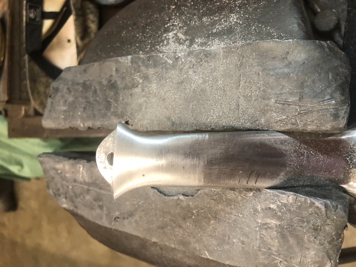 So as you can see too that integrity was gained. Hey for us. Racing your files occasionally through canning wax will keep your files from plugging up when doing soft metal. Some shaping, sanding in stages from 80, 120, 320, and 500 grit then to the polishing wheel.