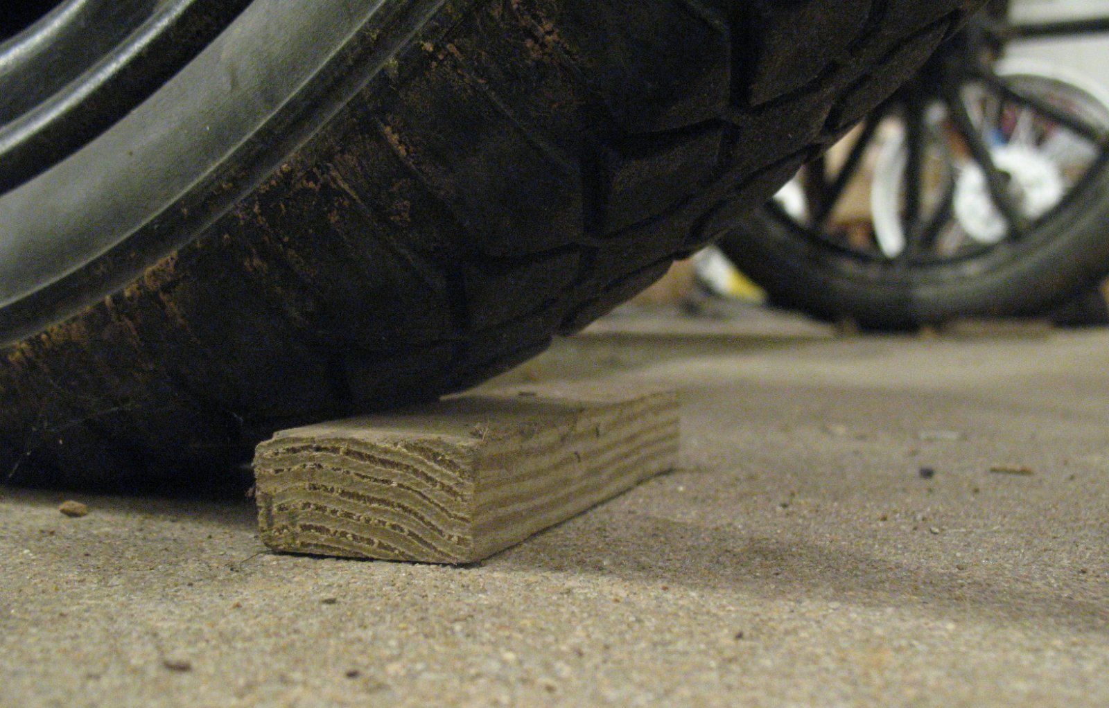 I put a short piece of 1 x 2 wood in front of each wheel. That keeps the car from creeping when it starts, and I can just drive over them when I leave.