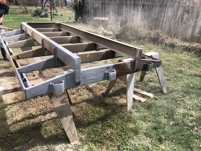 Frame and bed being blasted. I used a local guy that does dustless blasting. Nice finish surface.