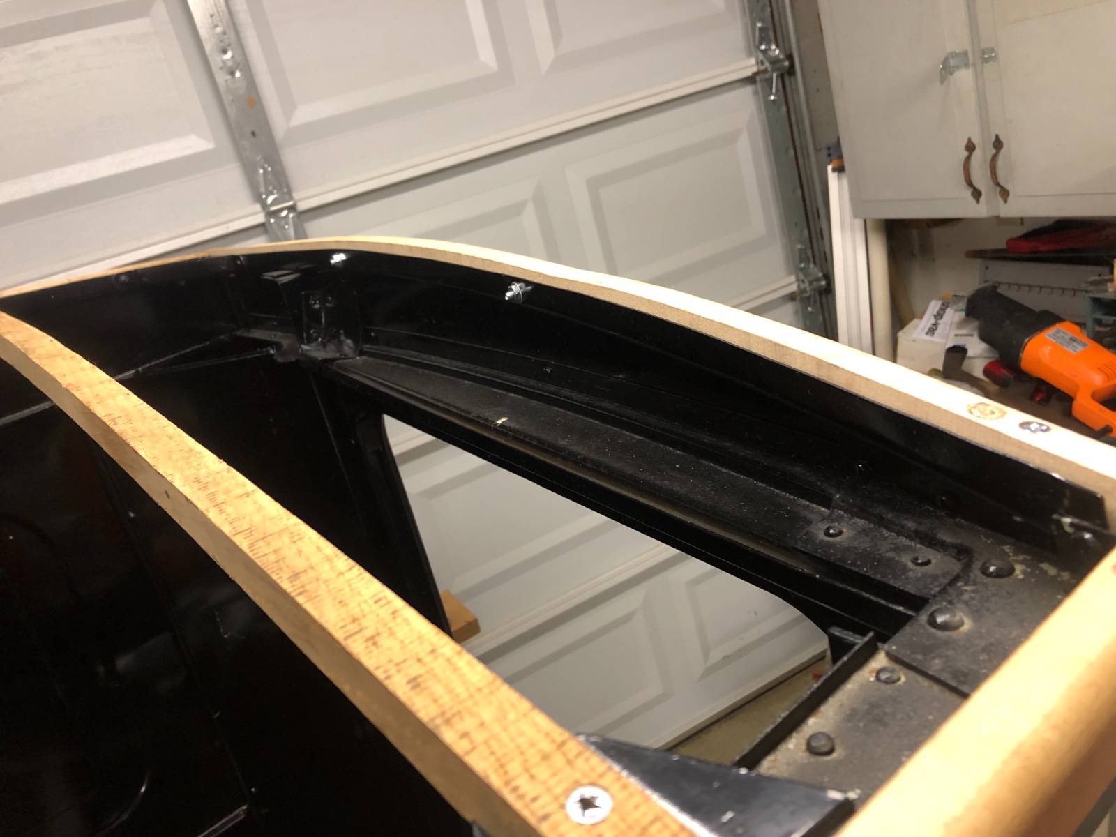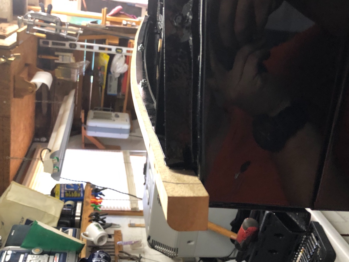 The edges of this layer were more poofy than the last after trimming but with little more trimming and the top layer it will be fine. Here’s the view from the inside too. It’s just from it laying on top. It turned out much straighter won’t I was able to put some tension on it and a few staples. That’s all for now. The hidem welt is on order and we still need to fit the top layer. Maybe it’ll be done before the weekend. Maybe not.