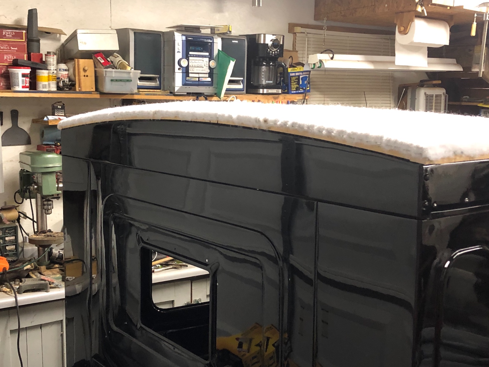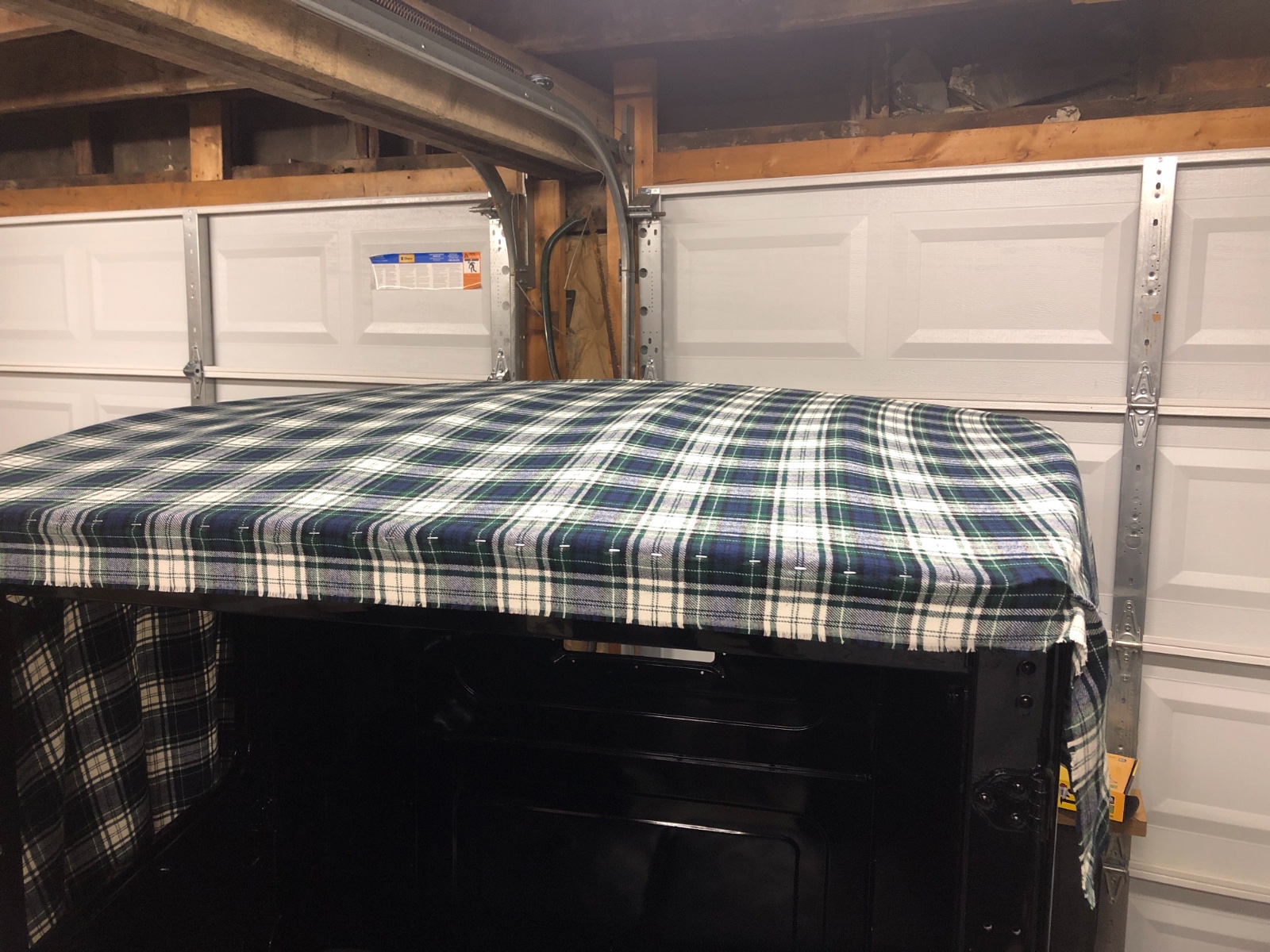 I have seen very little to no complete information/ instructions or pictures for that matter posted about installing the top wood and top for a 25-27 CLosed Cab TT Truck. So here we go. I’ve been working on mine for the last few weeks but made some major head way last night with the top cover. No the base material isn’t the stock muslin material but it’s just as strong and it’s my truck and I didn’t want to look up at black all the time! I’ll post what I have then keep updating on this thread as the project progresses. Some pictures will be sideways but that’s what I’ve got. Any bright enlightenments are welcome.