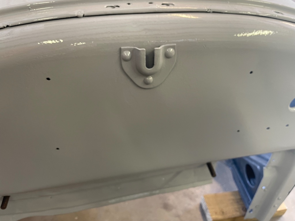 Later cowl, no pairs of holes for rivets to hold the formerly used fabric strap padding.