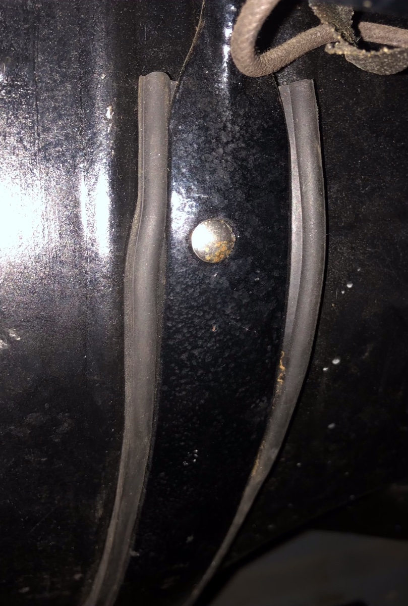 The cardboard insulator, 2018, isn't fastened with rivets, as the later cowls don't have the pairs of rivet holes in the cowl. That insulator just wedges between the cowl and the cowl gas tank, its molded to fit tightly. On this install a bit of spray adhesive was used to keep it in place anyway.