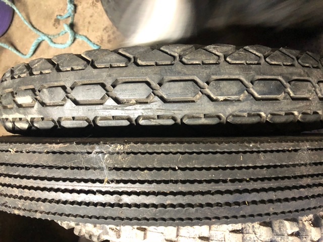 i went shopping on ebay last week and scored a set of 3 very lightly used 6.00x18 Lucas crossplys that are on the the list of suitable tyres for vintage sportscar trials so should be fine. They were on a Wolesley Hornet Special for two trials then retired so loads of life in them. £125 for the 3 including the post was a steal considering their list price is £175 each.