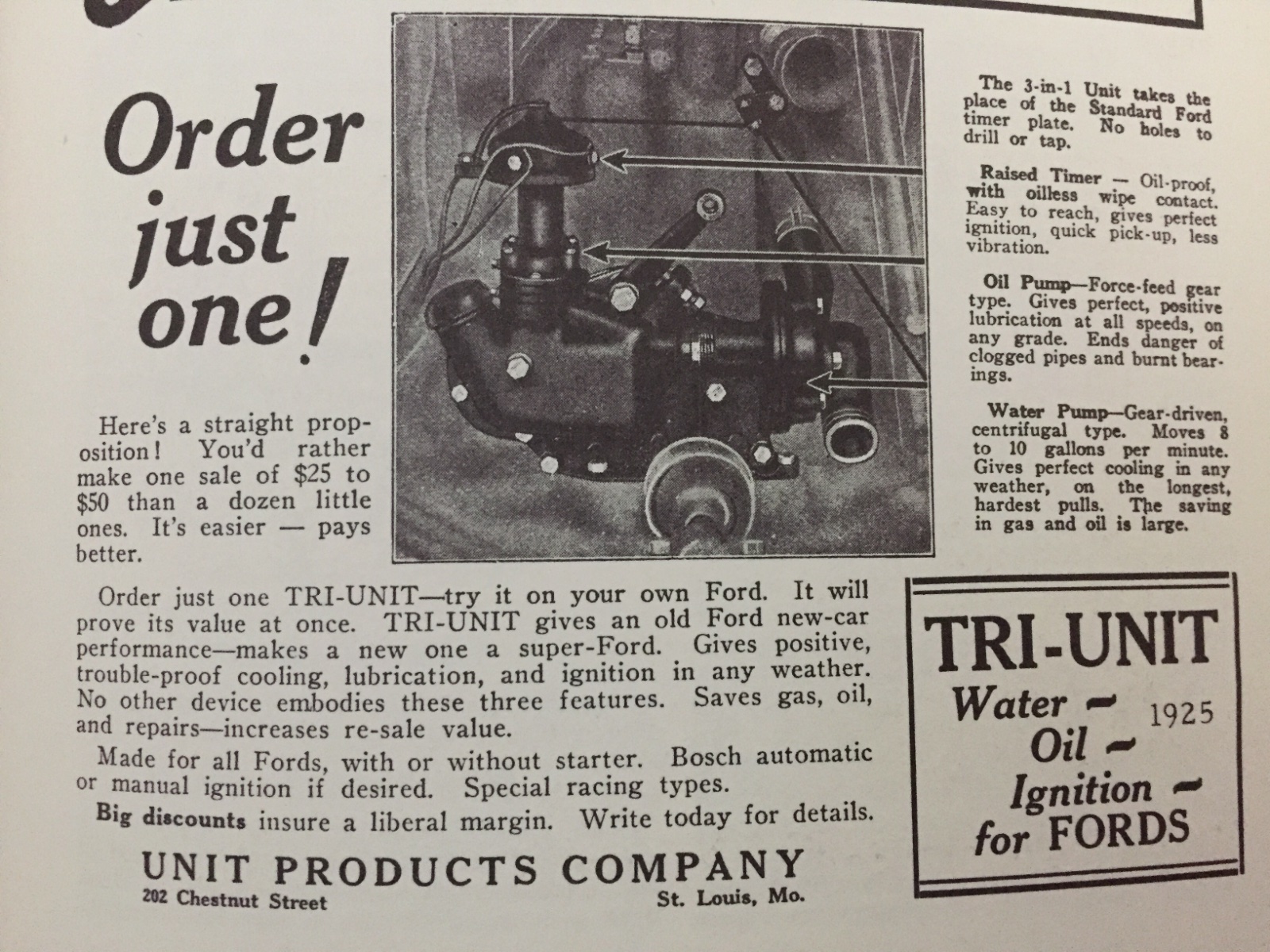 Here are a couple original Tri-Unit ads showing the timer elevator, and the Bosch option
