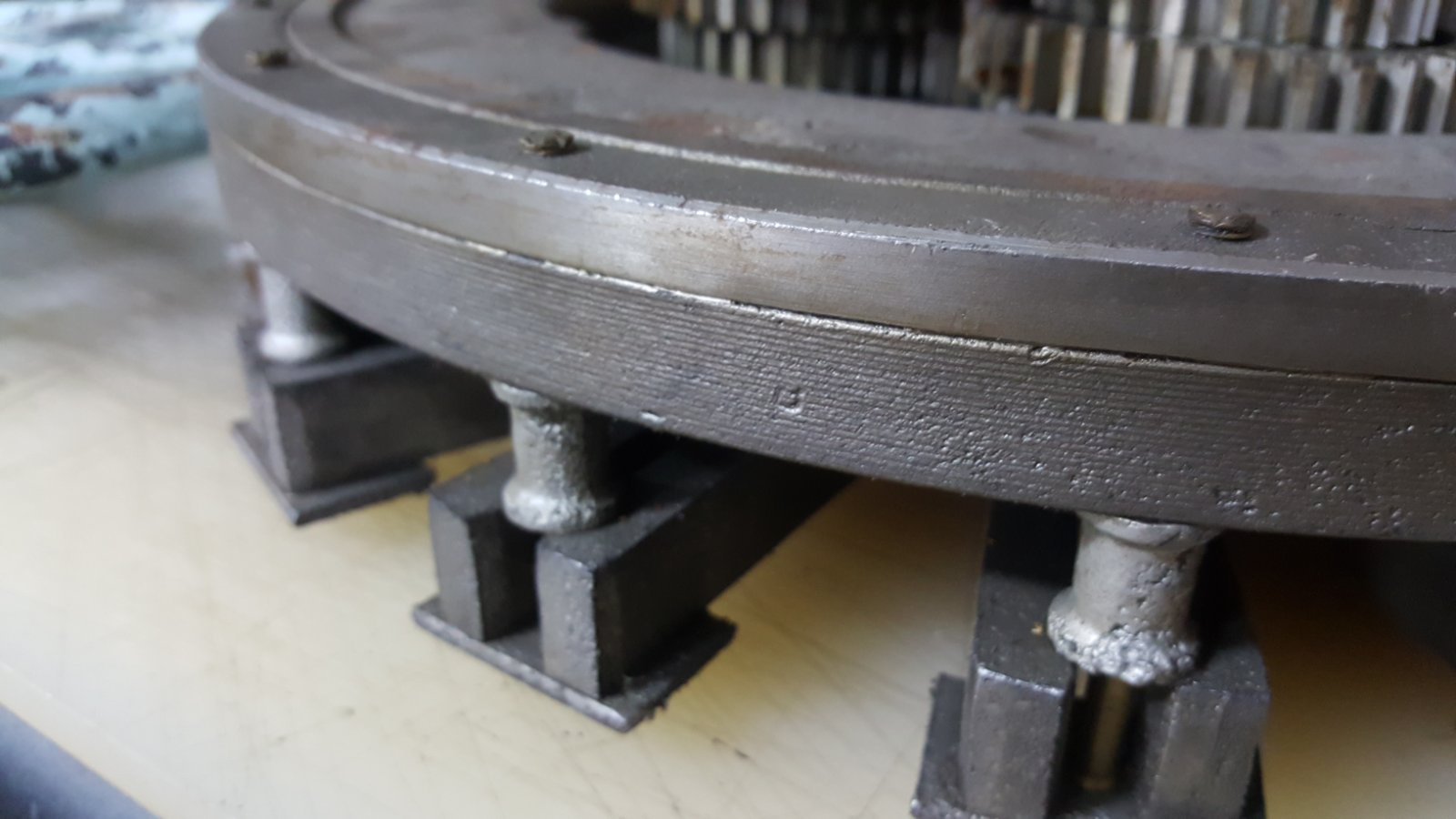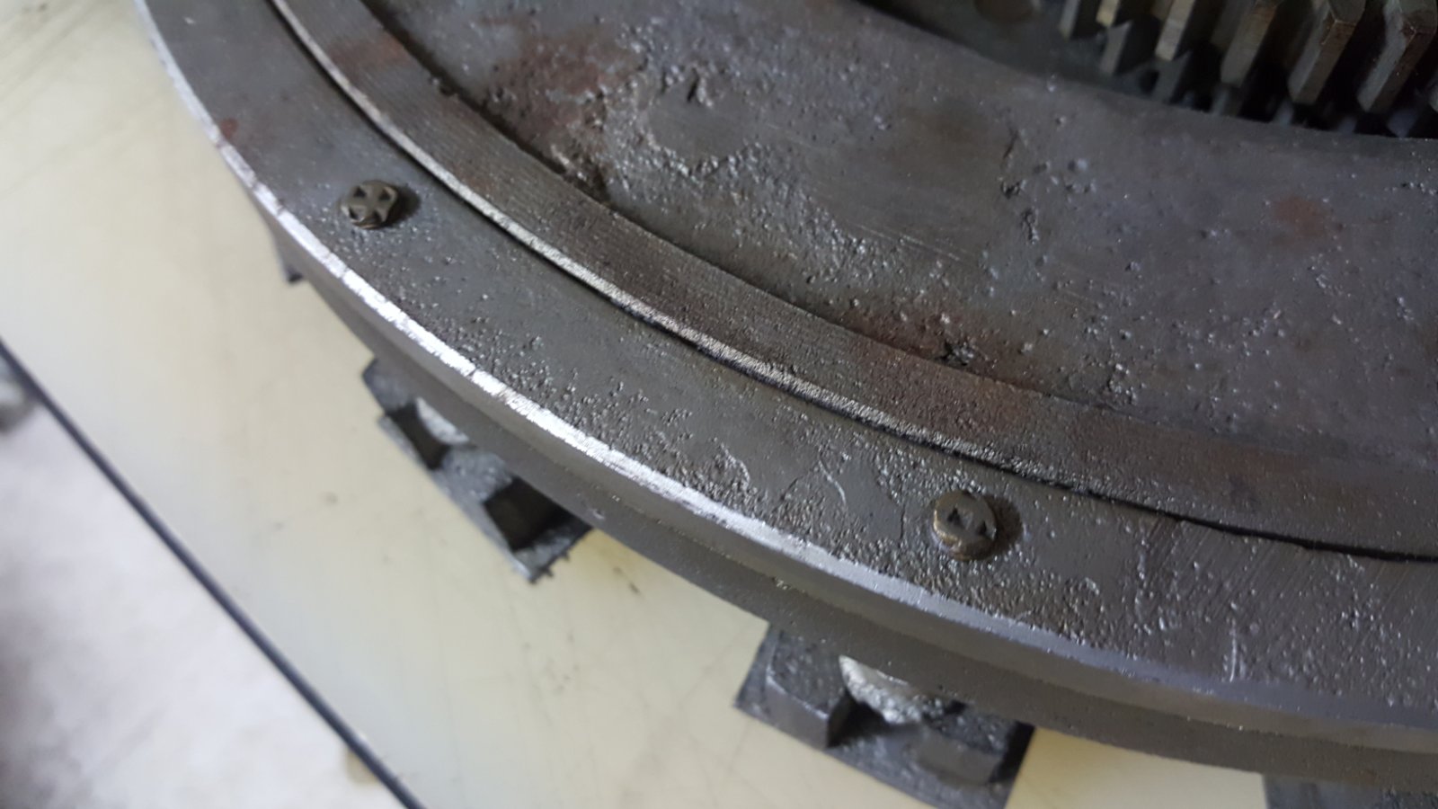 Coming back to this thread and studying the photos at highest magnification, I would be inclined to rule out the teeth having been turned off of the gear post installation. First, it makes no sense as nothing is gained, second it would be all but impossible to turn off the teeth in a lathe (and it was a lathe as a mill leaves an entirely different lay on the metal), as there is "zero" touch on the cast iron flywheel from the lathe tool. It would be very difficult to have done such a perfect job on the OD of the "ring" gear in matching the OD without having the tool at least touch the cast iron...and again, why would any mechanic/machinist make that extrordinary effort of precision/perfection if they were simply trying to remove teeth? Dead nuts OD would be the least of their worries, not to mention it would be a significant undertaking on quite a large lathe to accomplish all of this.