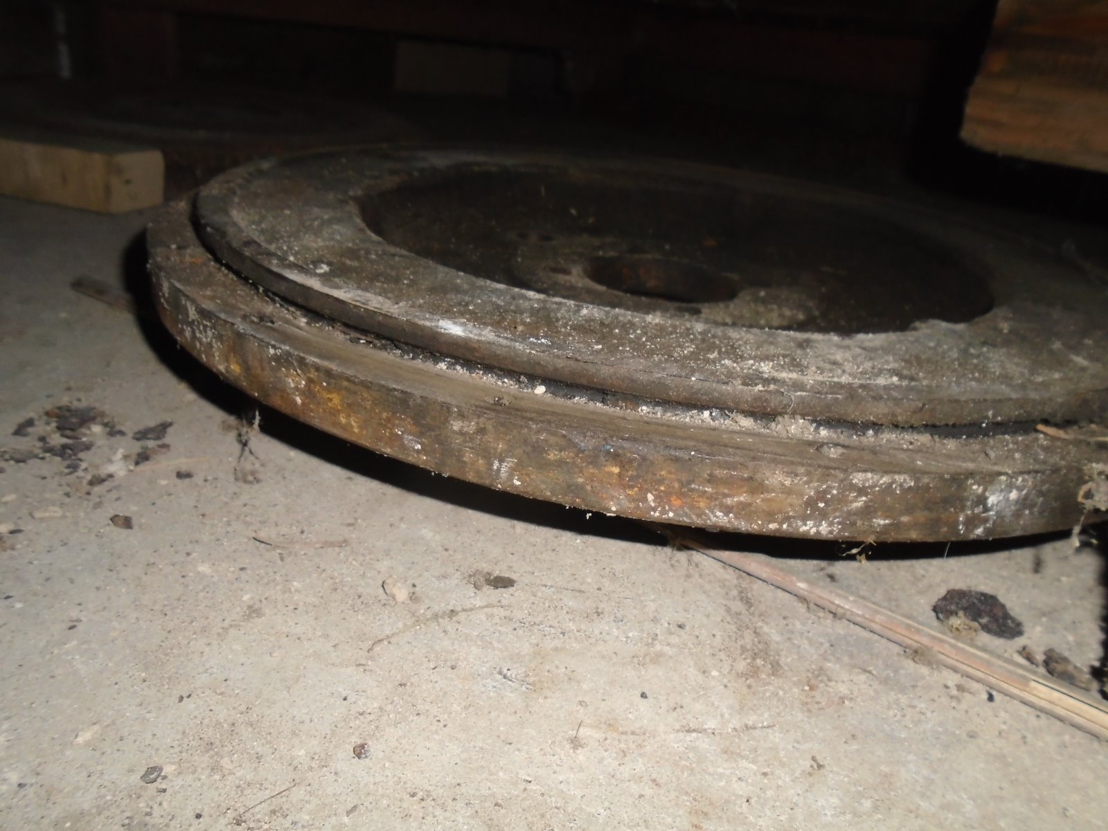 The flywheel I had was clearly model T in origin, however, the center was machined differently, a bit thinner. The three holes for the triple gears were there, but had never been finished. The flywheel was still bolted onto what appeared to be an output shaft that looked a lot like the T shaft for the drums to run on, but was twice as long! Along with this odd flywheel, was the remains of a coil ring. It looked just like any common '20s era T coil ring, except that it had only three evenly spaced mounting holes instead of the four that a T uses. Evidently, the flywheel and the coil ring were from the same something.