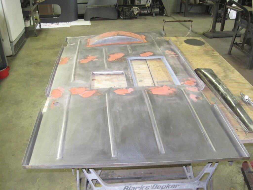 The original floor pans reinforcement bead rolls were "X" shaped and not straight like mine are rolled. The speed shop where I took the metal to be rolled started to roll the floor pan before I arrived and already had two runs done. I wanted them to provide me with new metal and make the proper "X" design but that is another story. The metal pan runs under the seat and into the turtle deck. The hump is positioned over the rear spring. From the front seat forward to the firewall is the standard wooden floor board set up. I'll post two pictures.