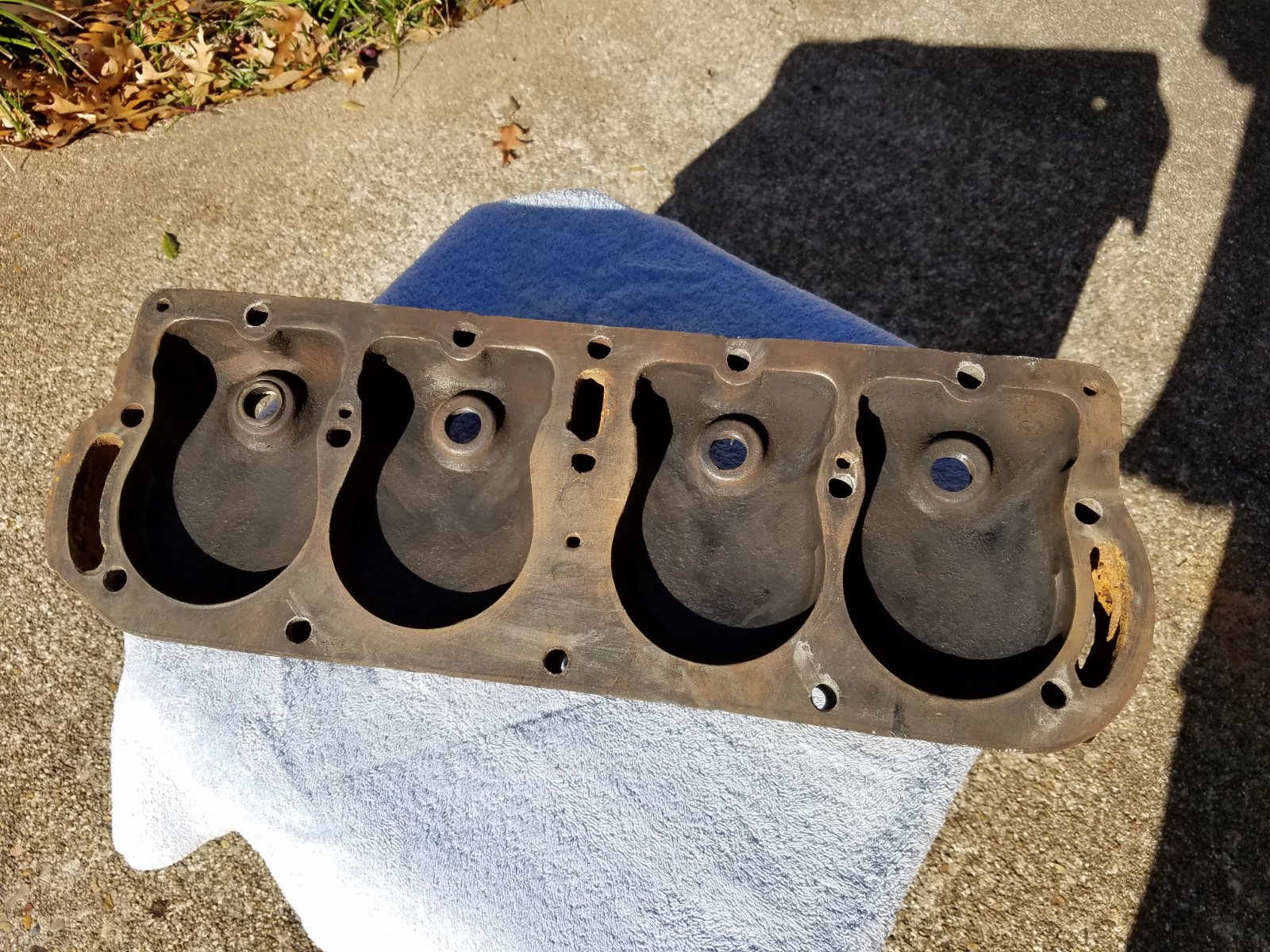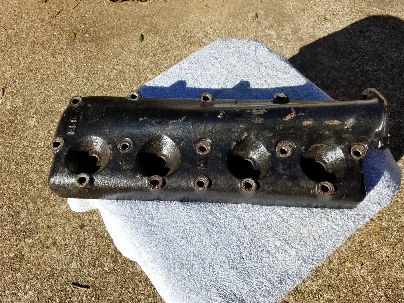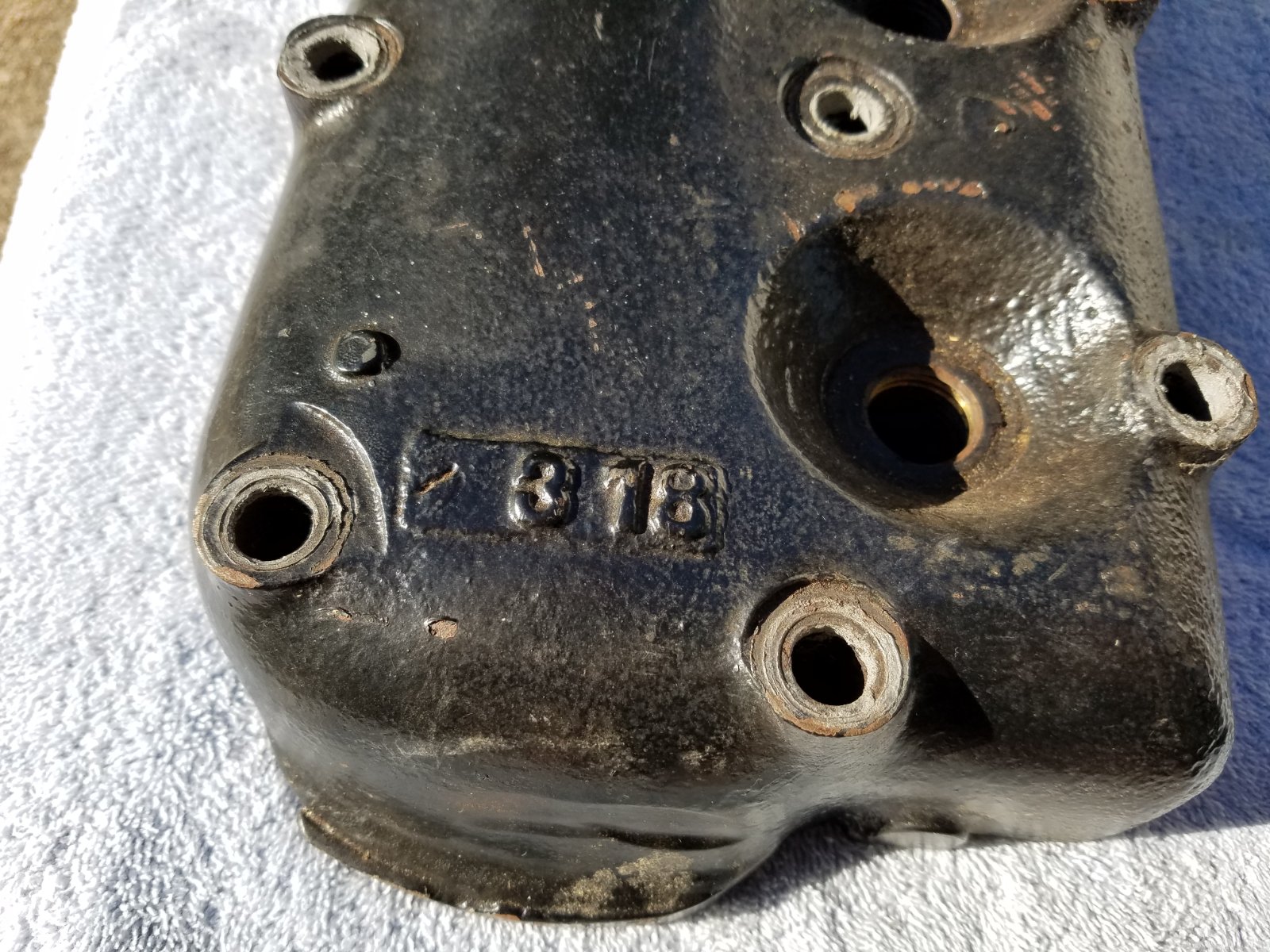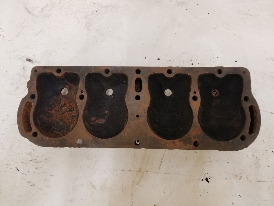 This head is the early combustion chamber and low design, I have many heads in my collection but never seen one like this, The early pump engine has different water outlet, the 9-early 10 have the thumb nails on side and back, then they went to the script around the center head bolt. Thanks Joe