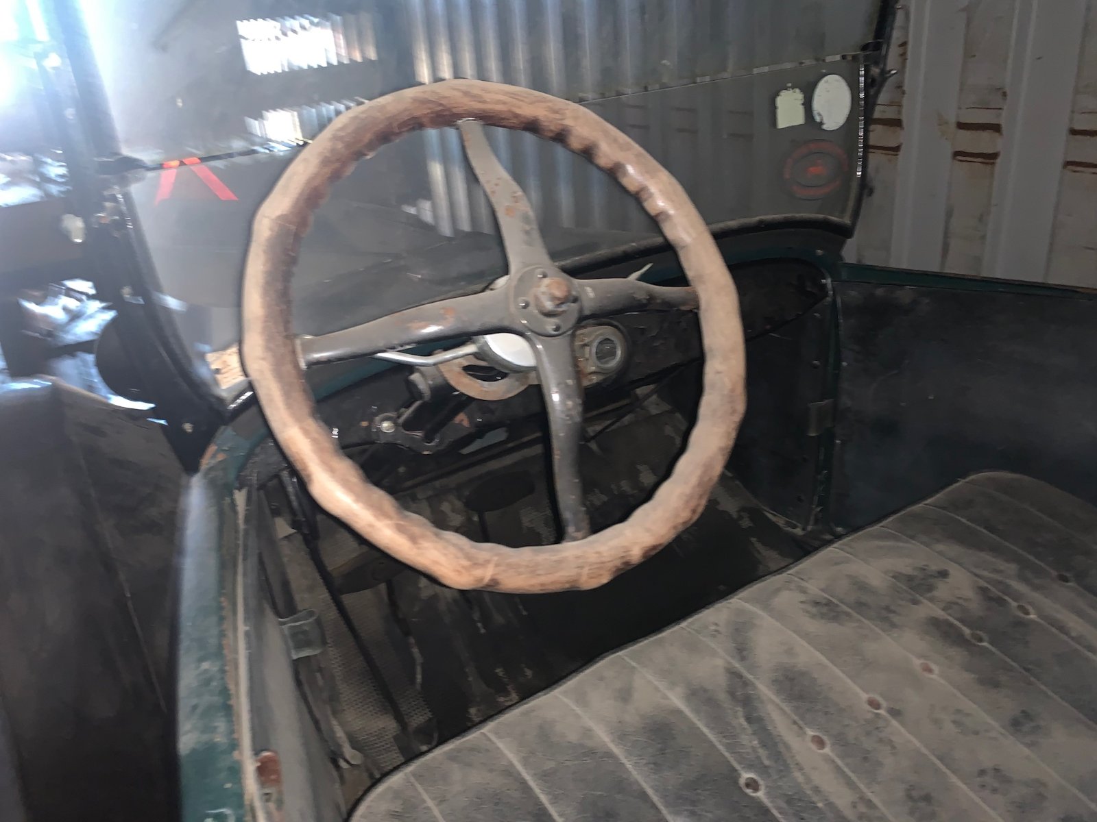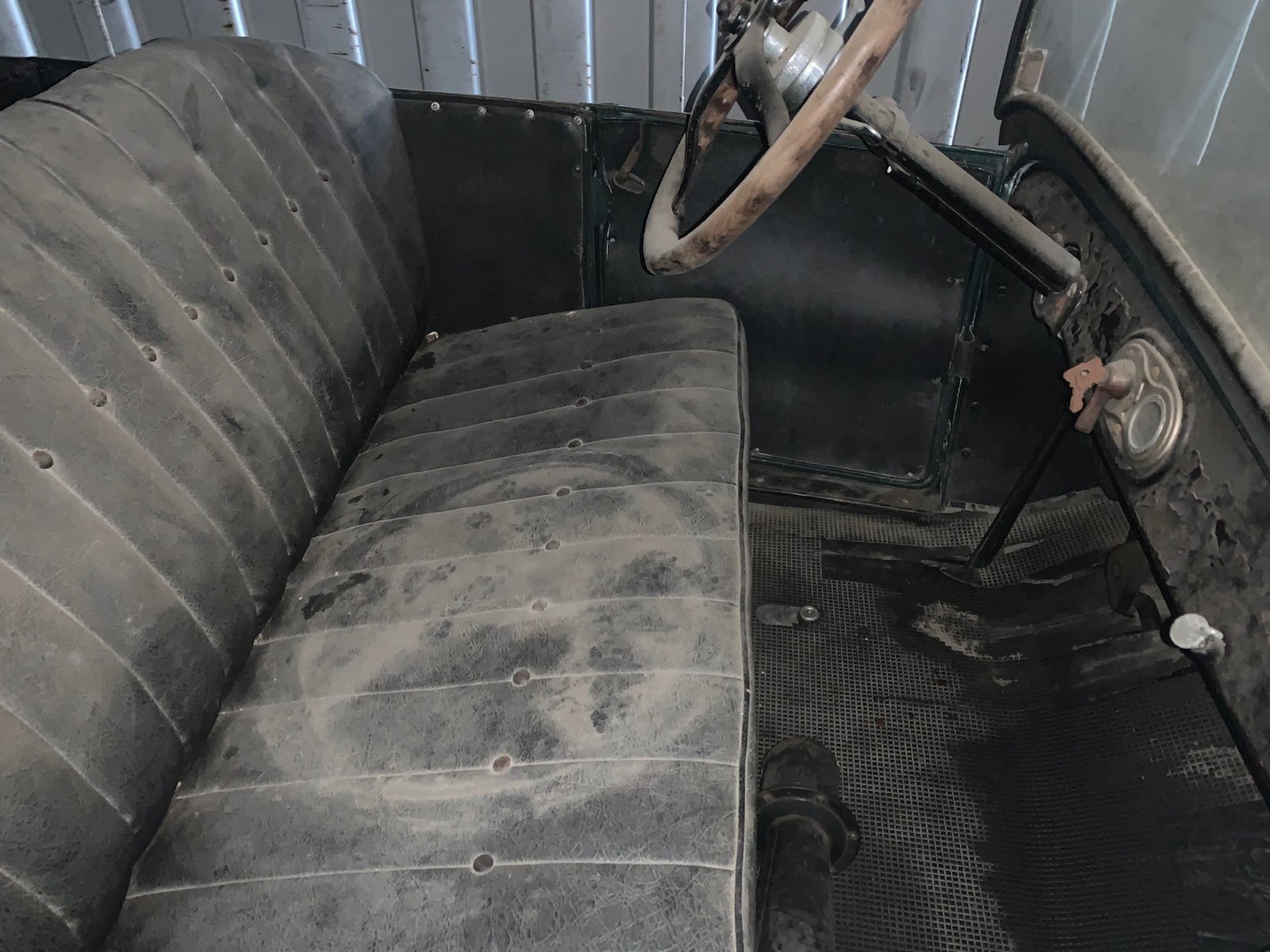 A relative has recently offered me an inroad to this hobby for a reasonable price. I've been given the choice of two T's for the same price, one as I've posted before is a 25 Depot Hack that started off as a closed car. The other is a 26 touring car that has been in a storage container for at least 10 years I'm guessing. My goal is to have a car that could be driven around town, and farther distances on occasion, as well as in a parade, or to get ice cream with the kids on the weekend, without having to do major work before it is safe and reliable for around town driving. A weekend of tinkering with carburetors is fine, cleaning up surface rust and priming as time allows is fine, but I'd like to avoid having to tear into the engine and transmission immediately. The touring car is my preference because of its authenticity and more enclosed seating (I have a wrangler if I want to drive around completely doorless,) but the hack looks to be in better condition, at least cleanliness wise and paint condition. I'm probably going to have to go out (the cars are in Kansas, and I live in Ohio) and see both cars before I decide which one is right for my family, but I figured I could share the pictures I'm able to get with you all and see if you can spot any reasons to rule out one or the other entirely. (or just what I need to dig into further)