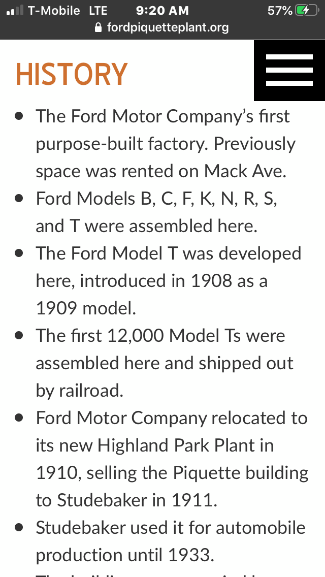 that came out of Ford’s first purpose built factory.