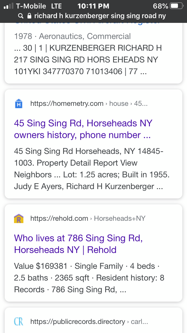 The town is Horseheads, NY. The Man was Richard Kurtzenberger.