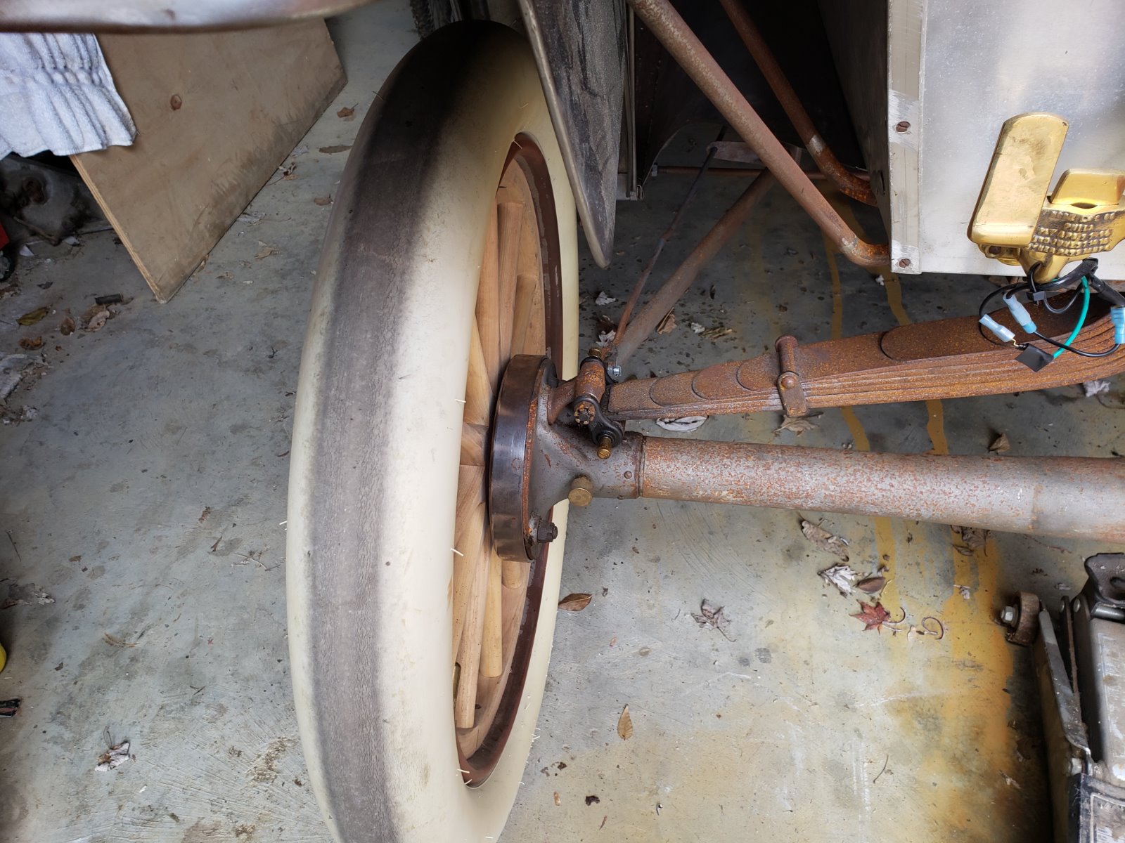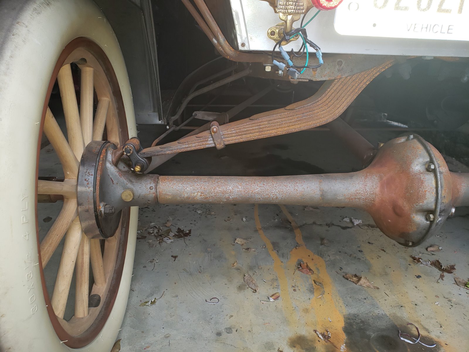 Much like my example, this early 09 rear end has similar random drum gap showing on both sides. This known car has the original style straight axles, where adjusting the gaps would be similarly complicated. I have to question whether these gaps would have been more problematic back in the day when this was an original driver, as the result of mud and debris accumulating inside the drum. I have retrofitted lined shoes with my drums, for improved E-Brake effectiveness, so cannot have the potential of some obstruction getting in there, that limits or prevents this performance.