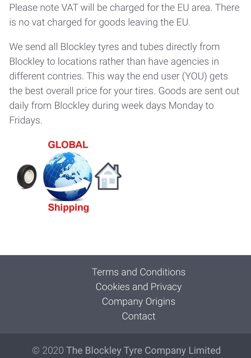 As mentioned above, I’m not too fussed where these Tyres and Tubes are manufactured as long as they are manufactured to exacting standards stipulated by Blockley and overseen with strict Quality Control surveillance. I believe this will be the case.