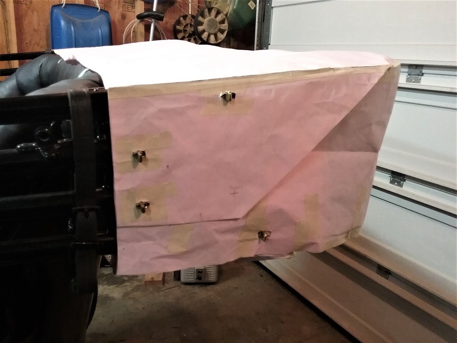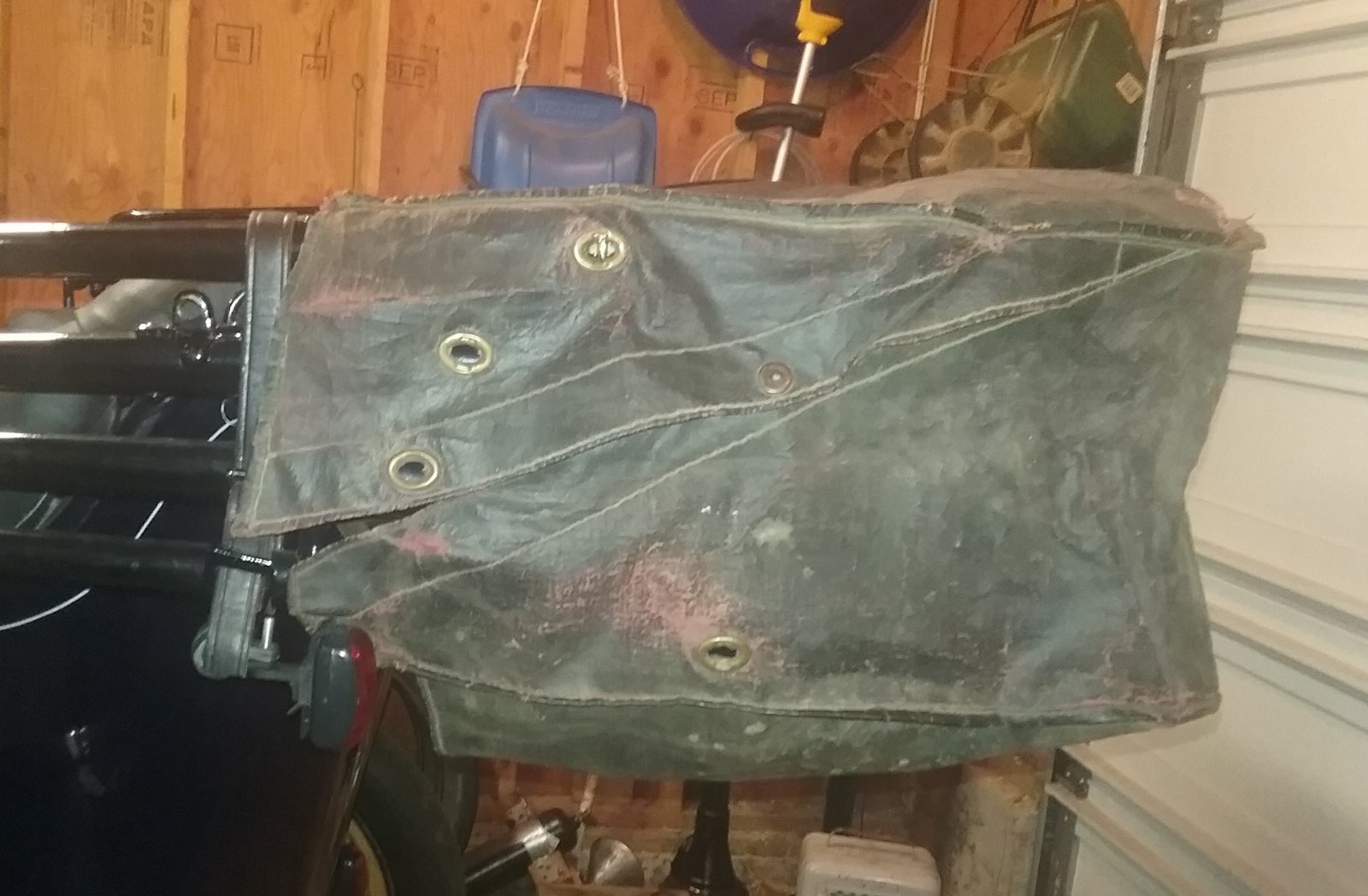 I am working on a pattern for a top boot (or top cover) for my 1911 touring car. Top boots were not a provided with cars in 1911, but were available as an aftermarket item. I have been working on a design based upon original photos from the era, as well as an example of an original aftermarket top and when the pattern is finished, I will send it to Mike at Classtique for his stitchery. Since it was not a factory item, I am taking some creative license.