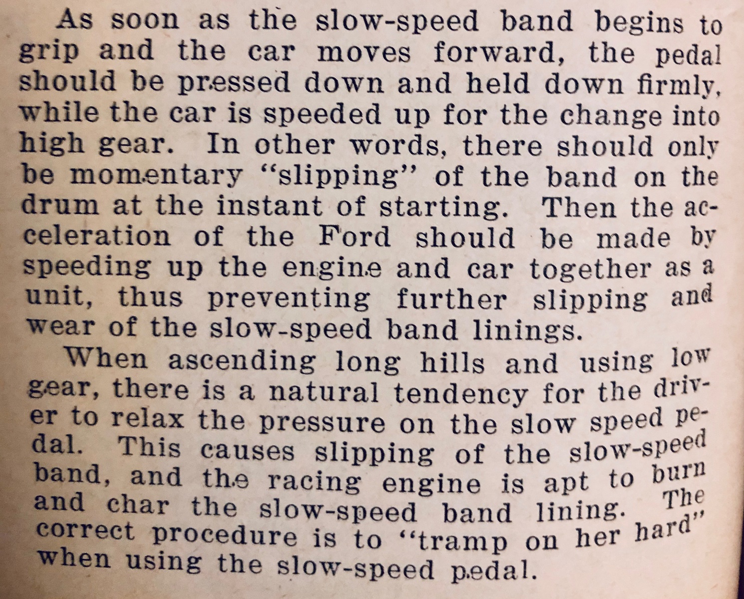 In his original post for this thread, Steve questions his pedal operating technique. Having read the many transmission failure posts over the past 15 years, it seems to me that today's drivers, Steve included, are being plenty careful. If you think about how drivers back in the day must have treated their cars, we would call them downright "abusive" today. Think about all the people who had never operated a piece of machinery, and then learned by a single demonstration by a salesman, or by an untrained acquaintance. And think about all the "bull in a china shop" people who were just going to do it their own way regardless of any instruction. And think of all the people who used Fords for really rough duty, driving in muddy fields, pulling stumps, climbing steep inclines, etc.