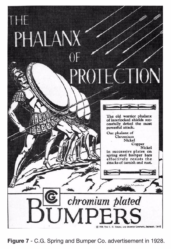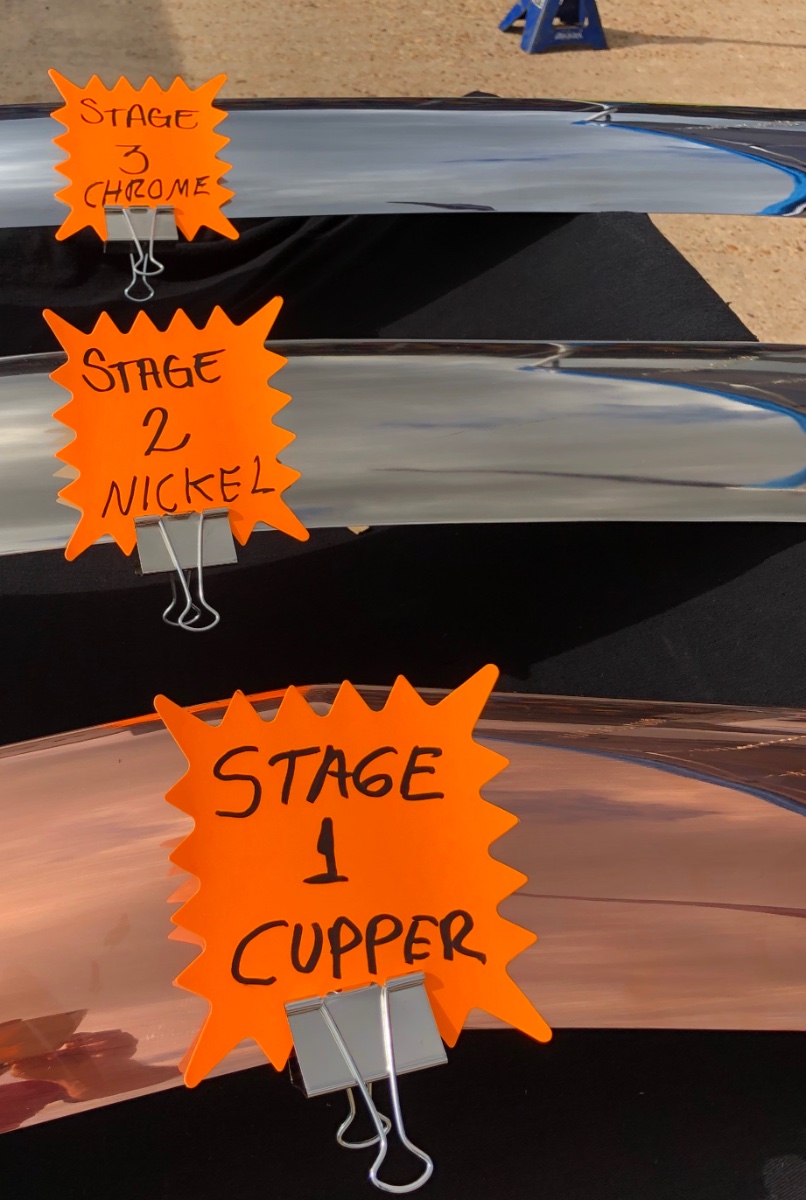 Well, I see I was quoted here, so guess I'll chime in. "back in the day" the nickel had to be polished to become shiny. the best plating starts with a copper plating, that gets polished to remove as many imperfections as possible, AND to provide better adhesion to the base metal. I find the Chromium Bumper add interesting as it indicates a nickel plate, then copper, then nickel and finally Chrome. Maybe on spring steel the nickel bonds better than the copper, and the copper is used to fill the imperfections?