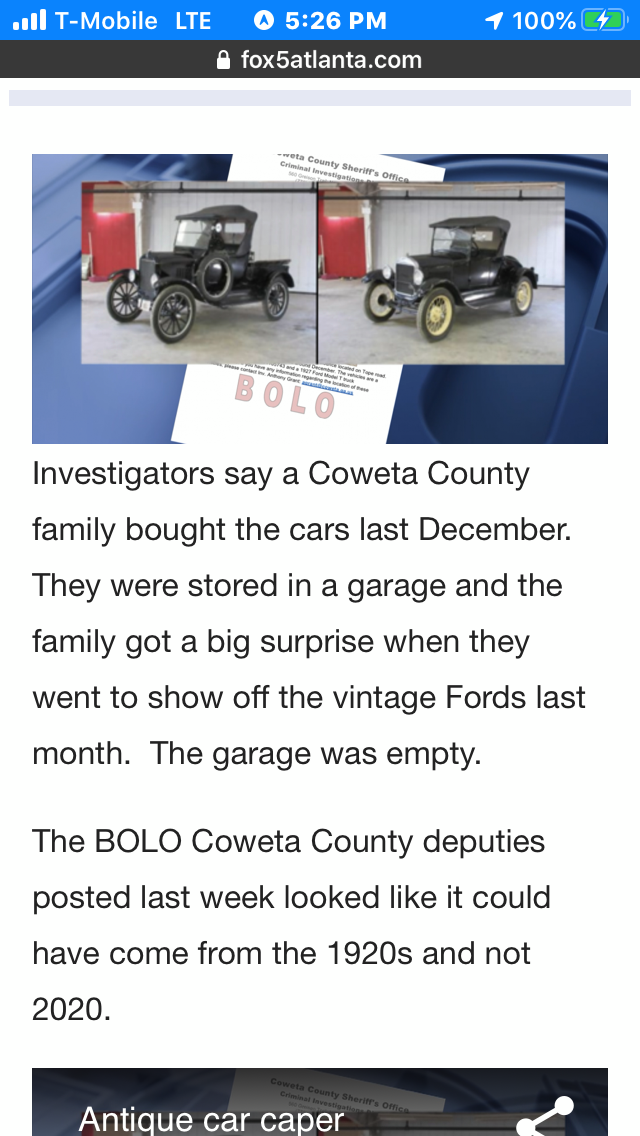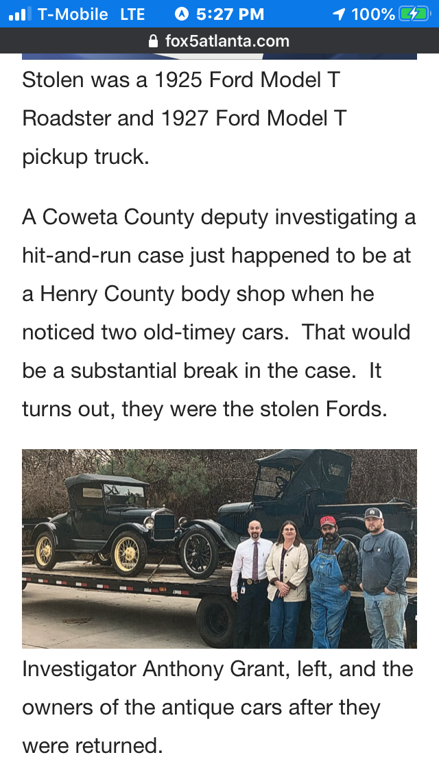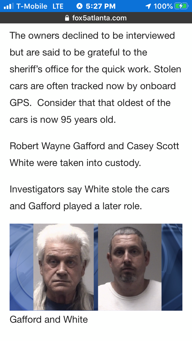 FB won't let me copy the picture. The two stolen Fords, a roadster and a pickup were recovered. Two men were caught and multiple charges will be issued.