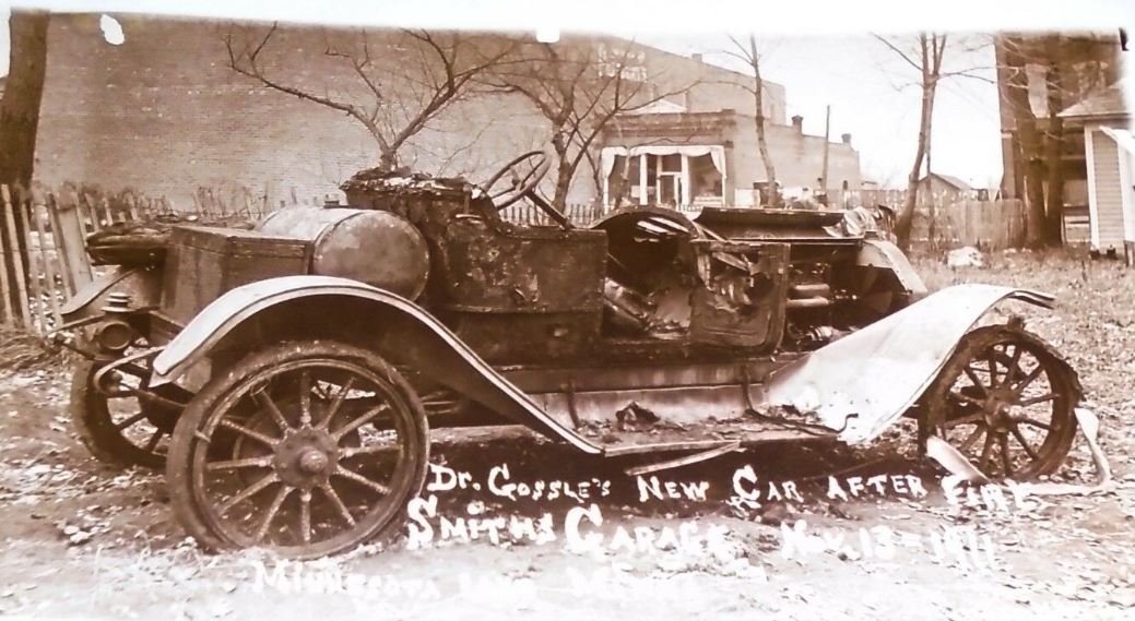 What make ? Did it burn in Smith's Garage ? Poor Doc Gossle. New car, it says, a 1911 model then ? November, maybe a 1912 ? Earlier ?