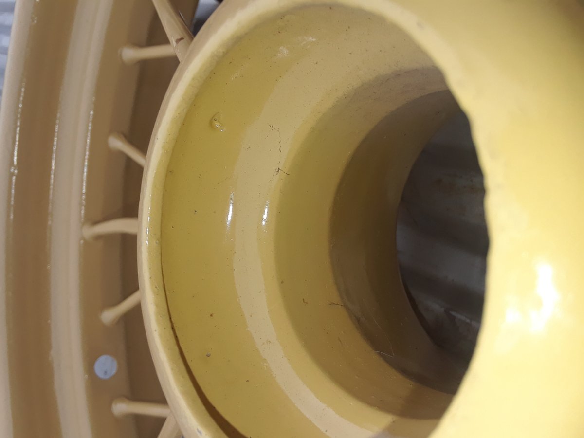 Spoke in 9 o clock position in first picture has broken weld at hub. I propose to drill hole on top of loose spoke to weld it from inside hub. Broken weld is clearly visible at hub/right spoke in second picture