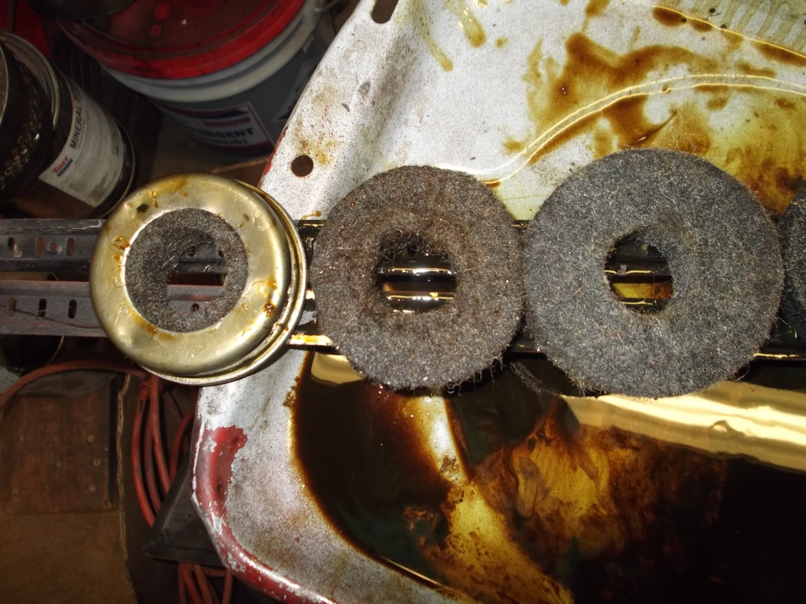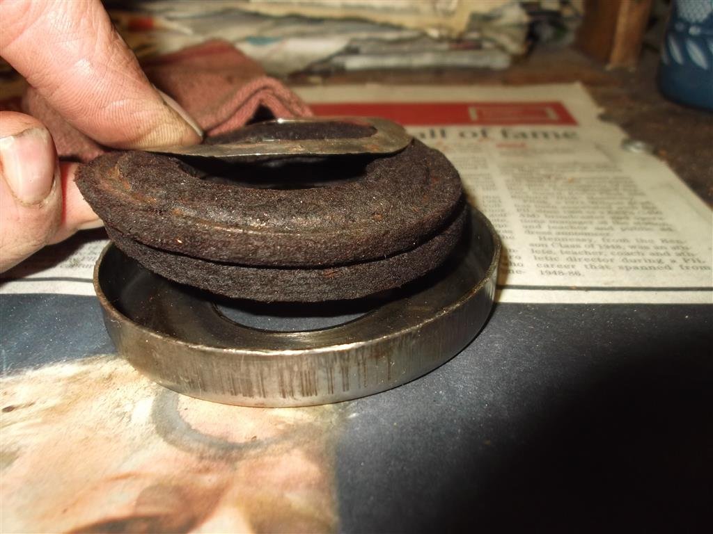 More photos. We are in the process of making felts that fit were they should. What I have found is either the hole the driveshaft coupler or axle fits through is too small or the outside is too big. The outer cup and felt is the bearing retainer.