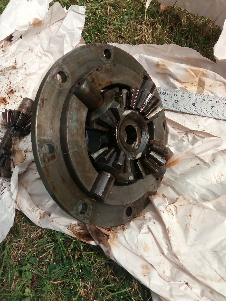 Do you see those gears that are on the ends of the axle shafts? Do you have a cleaned up picture of those gears? I need to see the teeth side straight on, the back side and a side view to get the angle...also if you've got any of the Ruckstell parts cleaned up, those would good to see too, especially the outside gear, just a straight on shot of it, so I can count the teeth.