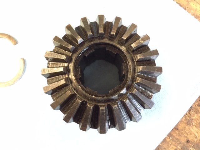 Does anybody have pictures of the differential axle gear. This is the one that runs on the pinions and is mounted to the axle shafts. I know the end of the shaft is splined, so also probably is the gear too, but I need to see the teeth side, to see if there is a counter bore so as to be able to put those half round retainer locks on the shaft to lock the gear...I figured it has to have something like this to lock that gear on the shaft, that or it is a taper fit. I would just like to get this right the first time though (because drawing gears is a right old pain, even with my new program, although it is better than the original way I was doing it).