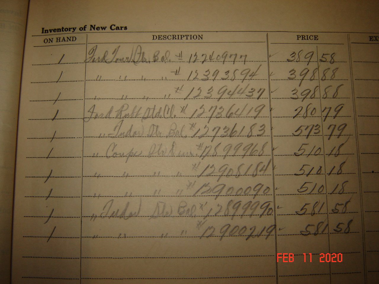 Re: FORD DEALERS INVENTORY RECORD BOOK