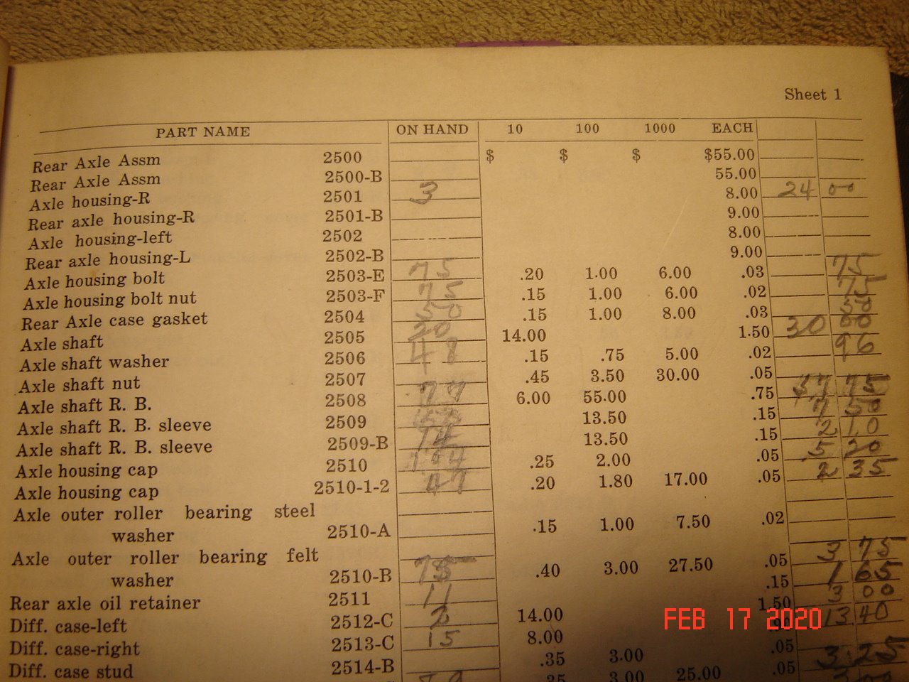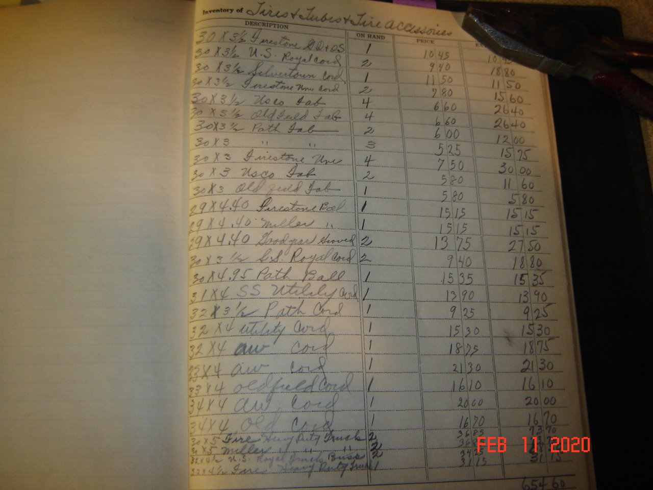 They had over $4100 in new Ford parts in stock, and about $2200 in tires and tubes and related supplies.