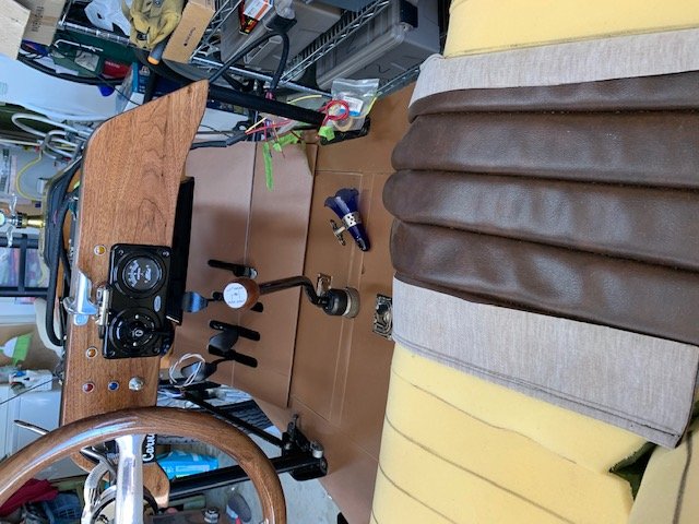 Hank, Point well taken. Lets face it people were much smaller in stature back then and "we" need a bit more elbow room. So I'm intending to have off-set seats, passenger slightly behind drive as in a PACO. I have purchased seats, retro Mini-Cooper, because of my target body width (it also has guide rails to slide forward or backward a bit and extra thigh support). I made a mock-up using foam board using the blueprint of the plans I found on the internet (previous photos). The next step is to determine the drivers seat position (combination for steering wheel, pedal reach and seat tilt). Then the passenger position to fit within desired car body contours. The to redo all the foam board shapes and positions before cutting wood. and then.......