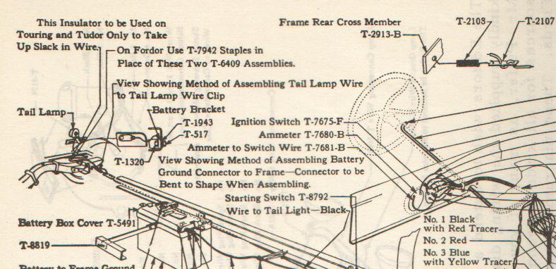 I purchased T-5032 tail light wire bushings. I have a 1920 touring. The old ones were not on my car. I understand that the eyes are twisted on to holes in the frame and the wire runs through the eye but wasn't sure where the spring and fiberboard rectangle with 4 holes went and how it attaches. Can someone explain it and/or send a picture of how it works. Also if you can include where all the eyes attach as I have 4 in the kit but only see 2 holes. Thanks