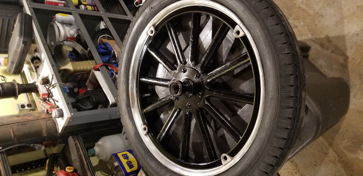 Susanne, When did you get the rims for your '20 done? About thirty years ago, at work, we had to custom-build special antenna mounts for an office building. The contract required hot-dip galvanize on them. So the price to do it was factored into the contract. However, the hot galvanize place did the job by the weight of what was galvanized, and they had a substantial minimum! Our custom brackets did not weigh but about a quarter of the minimum. So at work we added all sorts of used hardware and a few tools, an old water bucket I carried in the truck, a bunch of stuff. Still not near the minimum, I added about ten really rusty old T clincher rims that I had but was not using at the time. Several of them were rusty and pitted enough that I had already decided they were probably beyond using, and a couple were really BAD. But hey, the hot dip was free! The silly thing is, that about four rims I thought would be beyond use filled the pits so well and built up the edges enough that with just a little filing and cleanup, they were good to use, and ended up on my car which I ran for several years. Two of the worst ones, were still not good enough to use, but I mounted (then) 60 year old tires on them for display only! A 1930s Wards Riverside is hanging in my garage on one today! The '20s Hood Arrow is hiding in a cool dark corner of my mini-barn.