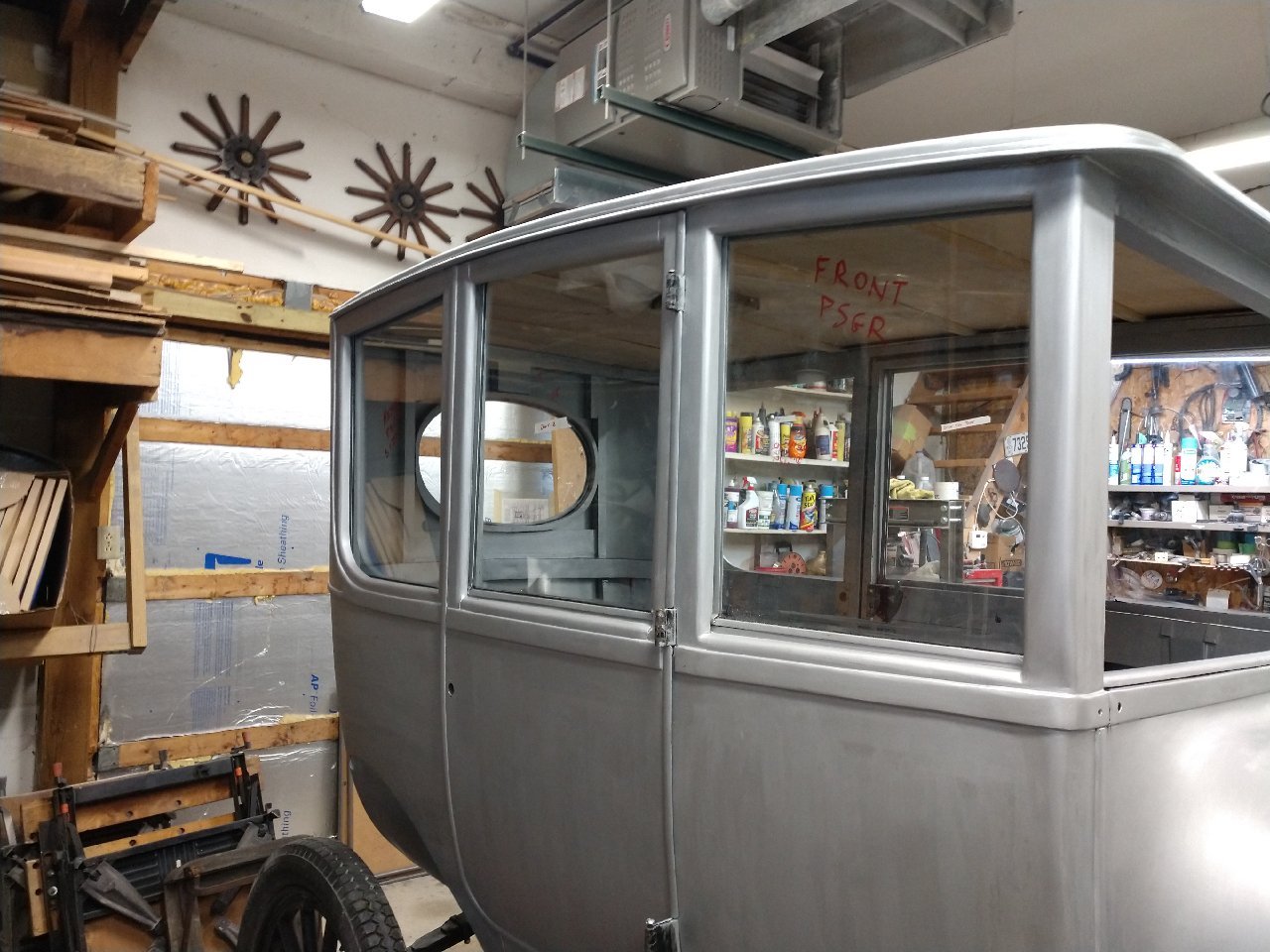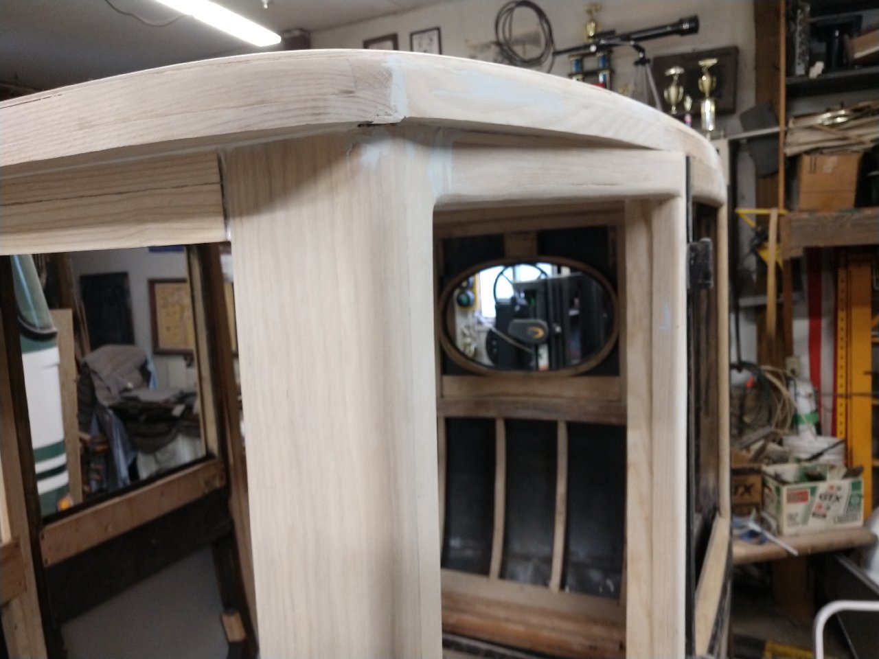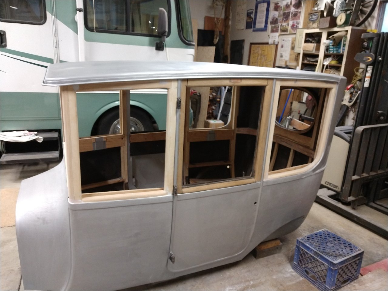 Both doors are rebuilt and ready for another 50 years (I hope). Now the sanding begins... Mike Husted straightened me out on the rear seat so its back to being correct.