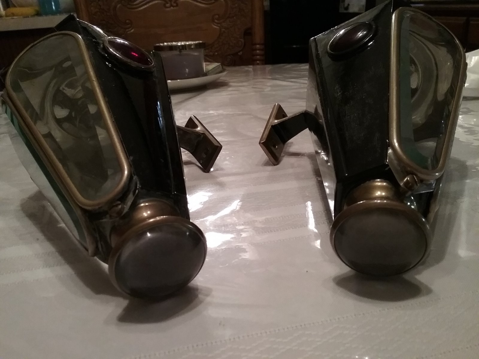A complete lost for words to explain how indebted and humbled I am. Jim Perry from Minneapolis called me and said he had an original set of carriage lights for my 15-16 and he wanted to see them mounted on my car. He said THAT is where they belong. He had looked for a 15-16 Centerdoor most of his life and never found one. OHH MY GOD !!! How can I possibly thank him for one of the most wonderful jesters I have ever received ? Words don't get it done ! Help me out here fella's, i'm on the floor and I can't get up !