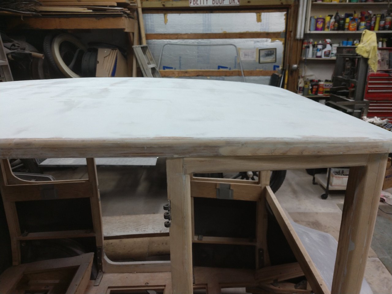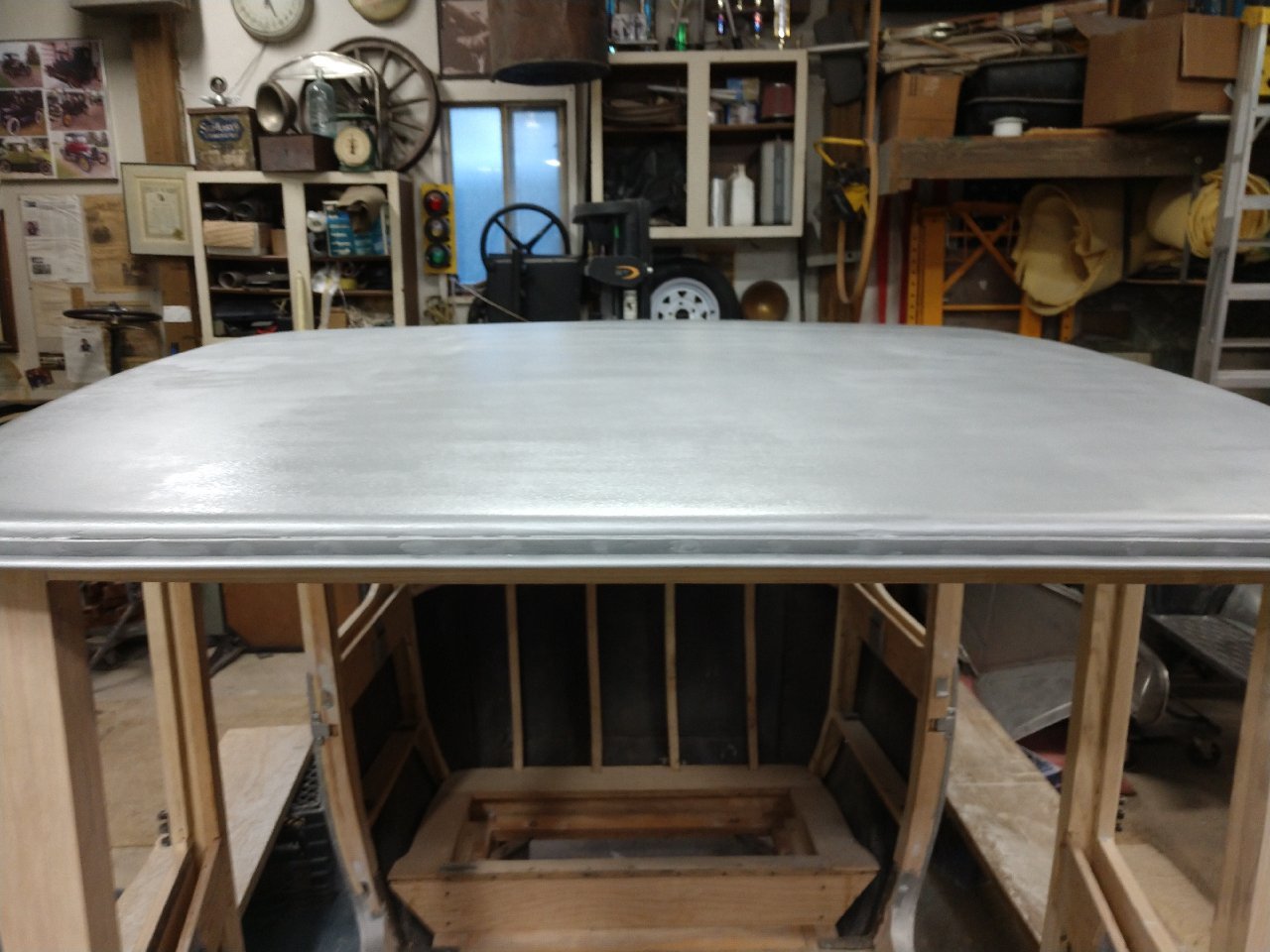 The top will be sanded and painted. However, I know the later centerdoors had a 5 or 6 inch border of leatherette that encircled the top. It gave the appearance of the top being covered but it actually wasn't. I don't know if the 15-16 Centerdoors had that or not. If you look at the picture of the all the Centerdoors at the factory, I don't see any evidence of that leatherette border. I will have to wait and see what the experts think. Jus part of the fun Denny...
