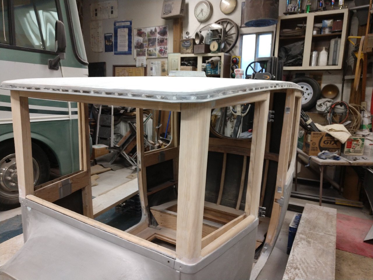 Well, I wasn't going to post this. Some folks get emotional when they see how I do things. "Henry didn't do that!!" and they are absolutely correct. But i'm not Henry and I tend to build these cars using marine materials and methods. For instance this top is a "floating top" design. My thinking is it needs to flex and absorb shock yet be structurally sound. It also needs to be light weight so the car isn't as top heavy. It also has to be tied to the metal which means two materials that expand and contract at different rates need to get along. This is my way of doing that.