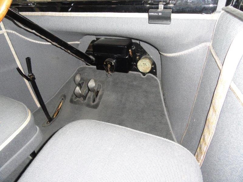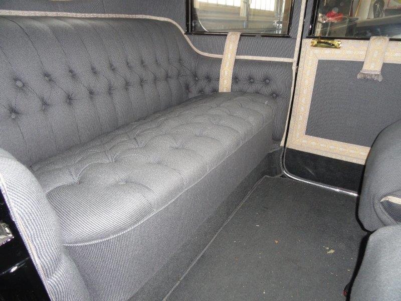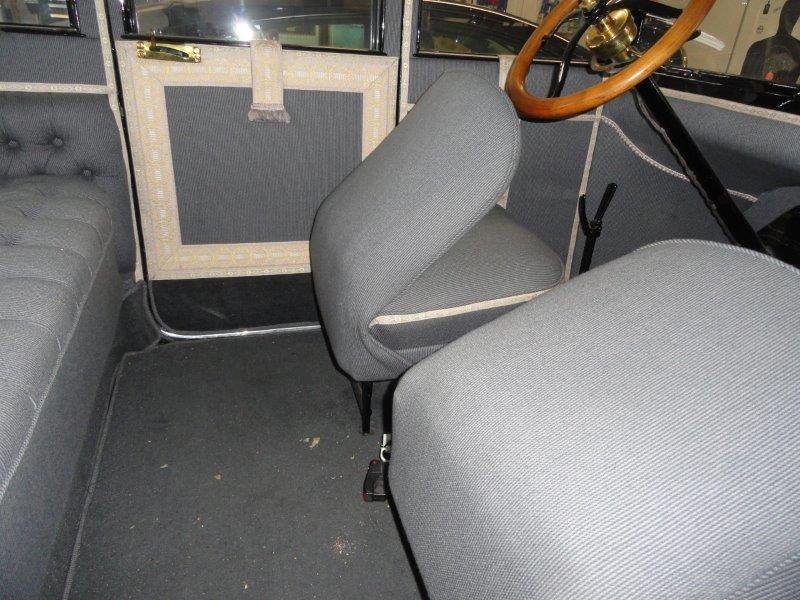 In the production early '15 sedans, the rear fenders were special, attached directly to the body instead of onto a fender post or standing iron as the standard fender was. The '15 production body was still aluminum skinned, and slightly smaller than the prototypes, but still had elegant interiors and a fancy three panel combination windshield and visor.
