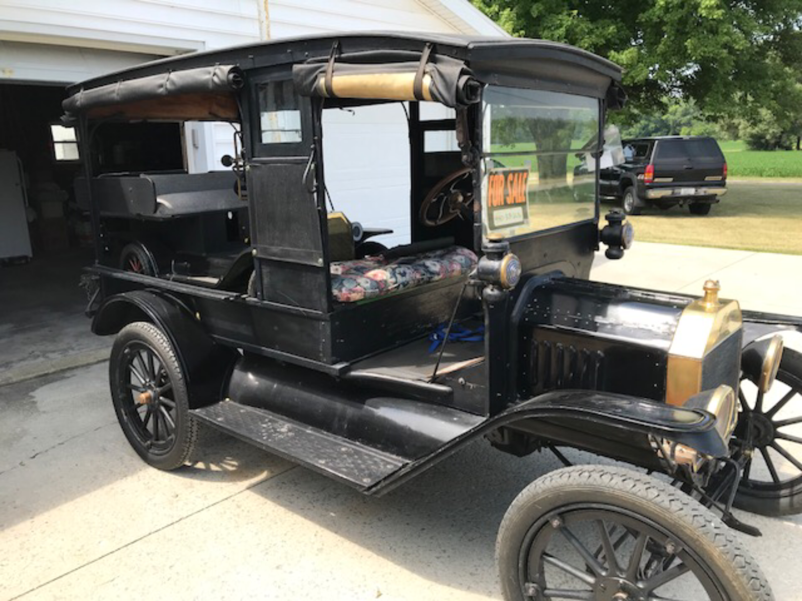 Thanks for the heads up, Dave. An example, very similar , was offered for sale about 20 minutes from my home. It took them a couple years to sell, but they only rolled it out on the occasional weekend. It would be nice to know where it ended up, and I hope it ends up on the road again. This local one was very similar, even having those small wooden spindles by the front seat. You cannot see from this picture because of the side curtains. I may have more pictures for. The year before, I need to look. These are great to see in order to study original construction details. They were always built very lightweight, sturdy, and strong. This one even had tapered upright posts. Very delicate but strong ironwork. Painted from day one. If you are contemplating recreating a hack or huckster, it would be great to take the time to observe and study an original. As for the vehicle itself, it appeared with my quick looksee, very correct for the 1914 that it was being sold as. Correct motor, it did have a real early style battery horn. Aftermarket wheels that I would consider a bonus, but other than that, very nice. They were asking $17,000 , and pretty firm, so I expect they got pretty close to that.