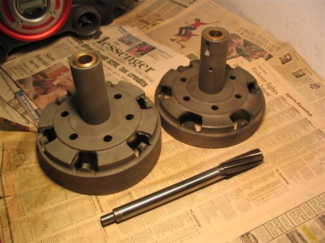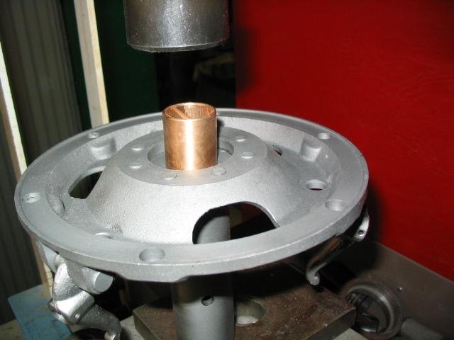 Only use 1 bushing in the flywheel end, of the brake drum. The tail shaft should be line reamed, with the brake drum.