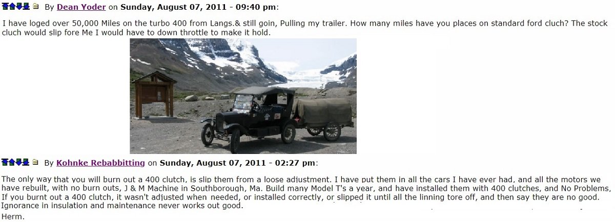 IMO, the use of the modified or 'jack rabbit' ( all but 6 lugs trimmed off... to fit the original Ford clutch drum) performance composition turbo disc , with the crosshatched surface, mated with good used Ford large disc provides a very good clutch. Have been satisfactory for years in my T's.