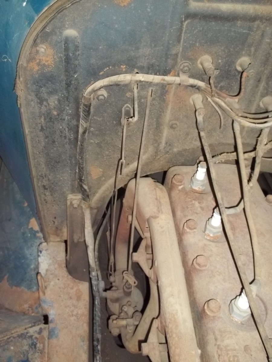 Then you need the long adj. rod, fork end to the carb adj needle valve top, then the loop-end extends into the slot of the firewall, and extends a short way up under the dash. That is if you have a body with dashboard to fit to the firewall.