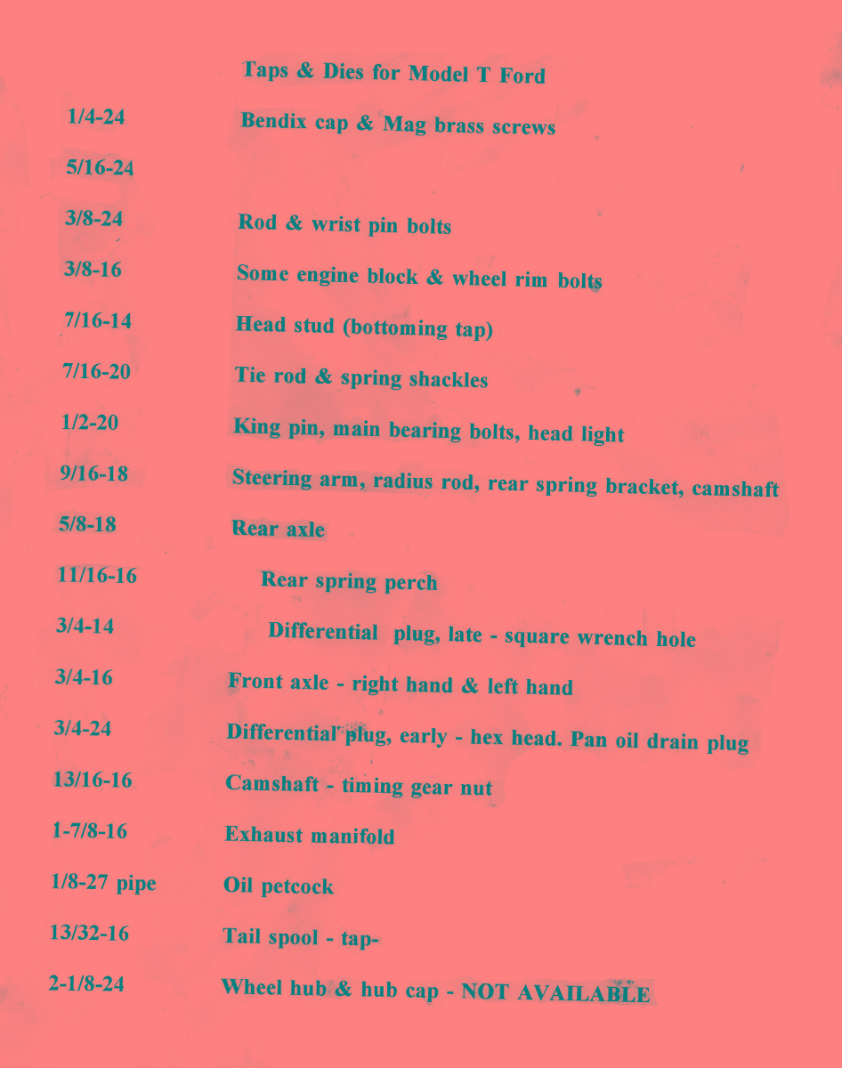 Following that I plan to blend the chart with the Ford of Canada Spanner chart posted elsewhere. At the moment another member is scanning the original spanner chart in high res which will allow better detail on numbers. This will also give added info of bolt head spanner size and location on the car.