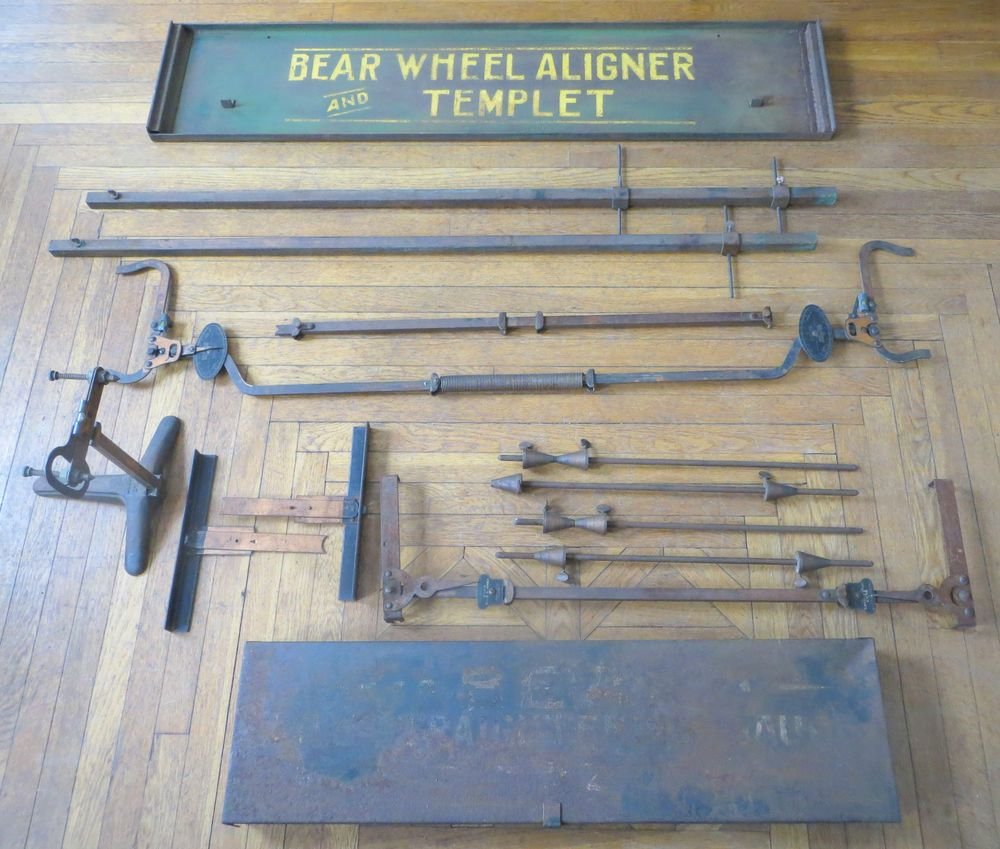 Could someone with a Bear or similar alignment tool please describe how to use it, specifically, how does the alignment tool stay on the wheels for measuring. Looking at pictures I cannot see how it can be done by one person without falling off the wheels. Some look like they have ends that might wrap around the wheel fellow, and others look like they have points to touch the wheel fellow. Does the spring in the center of the connecting rod work in tension or compression? I am thinking about making something like it with plywood ends and a metal connecting rod, but don't quite understand how it interfaces with the wheels.