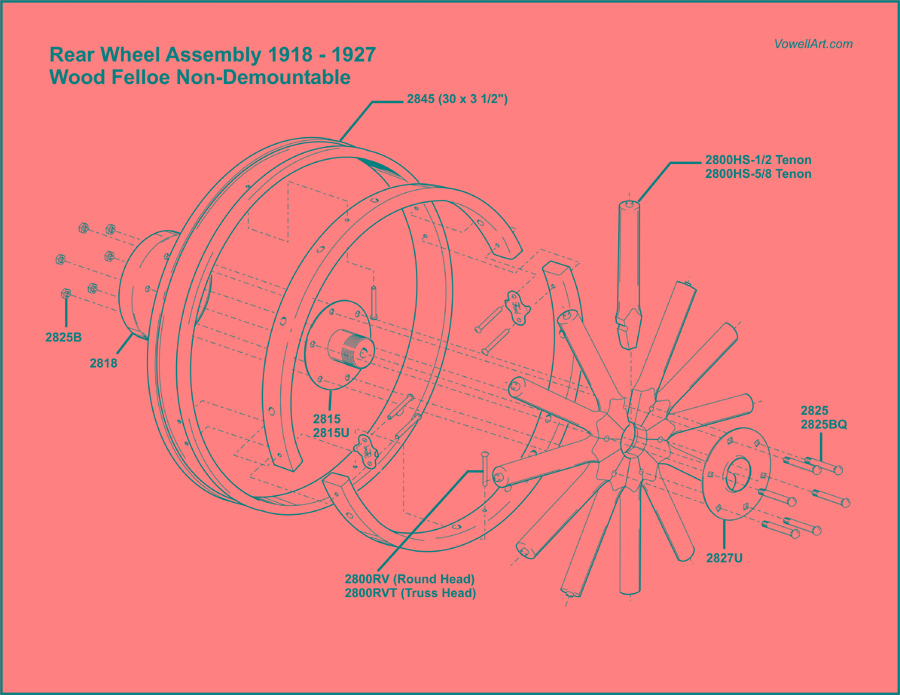 The wood felloe wheels with solid tires are made a little different than wheels with pneumatic tires.