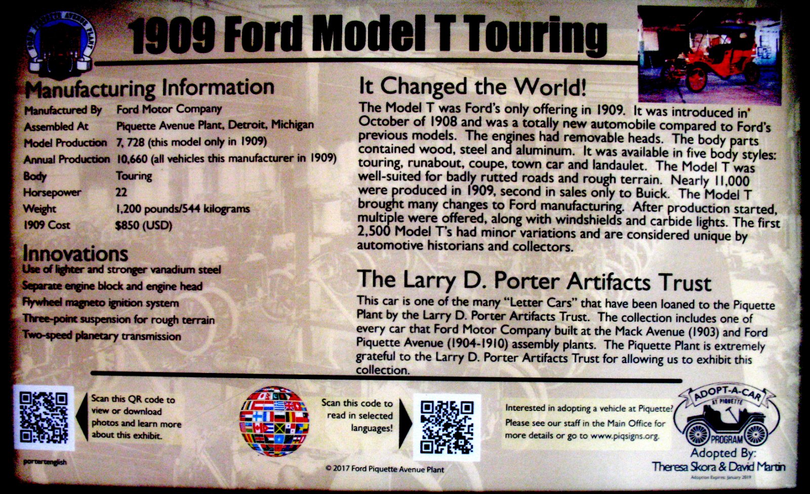 "Letter" collection 1909 Model T, no serial number shown, September 7, 2018.