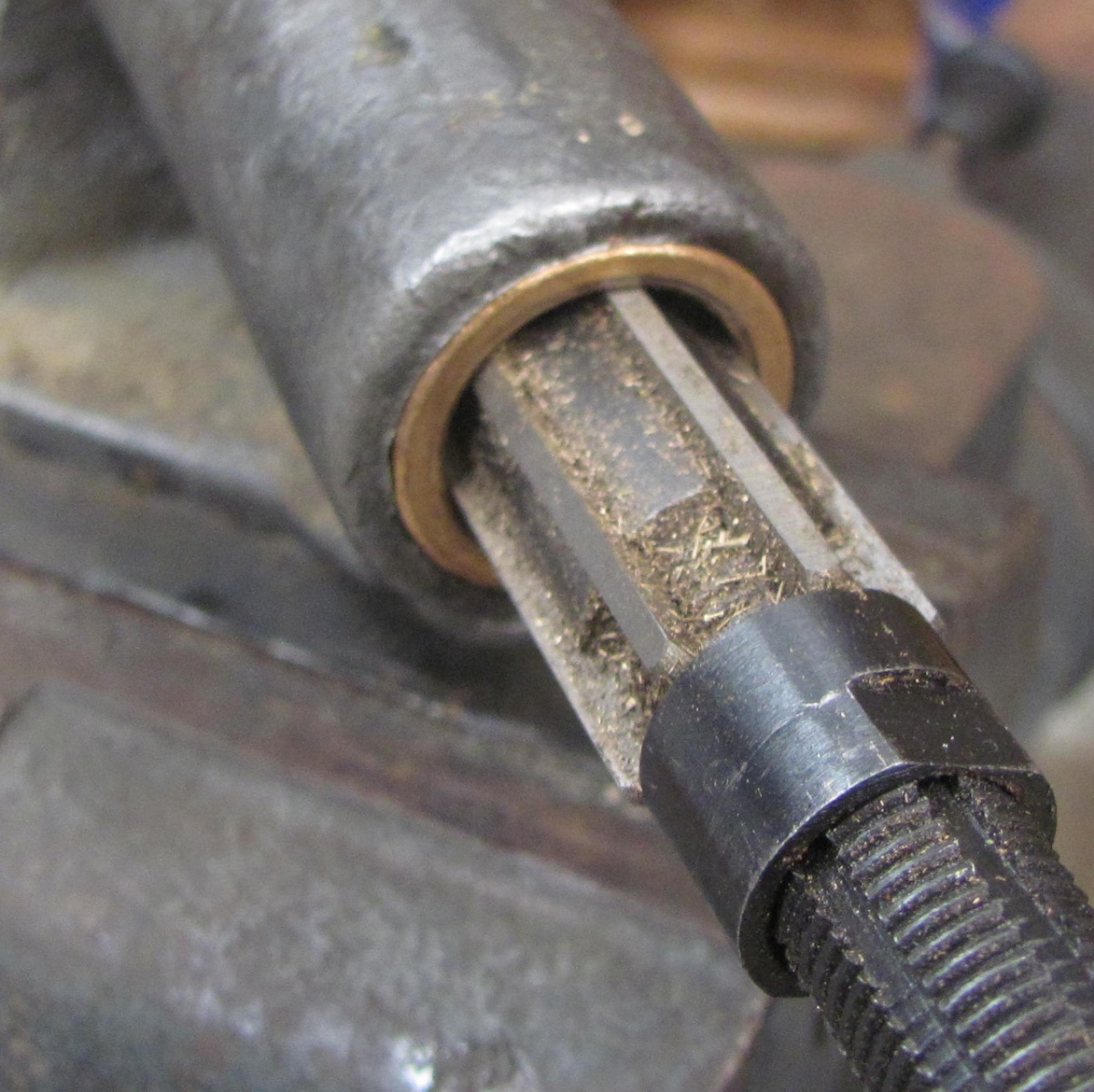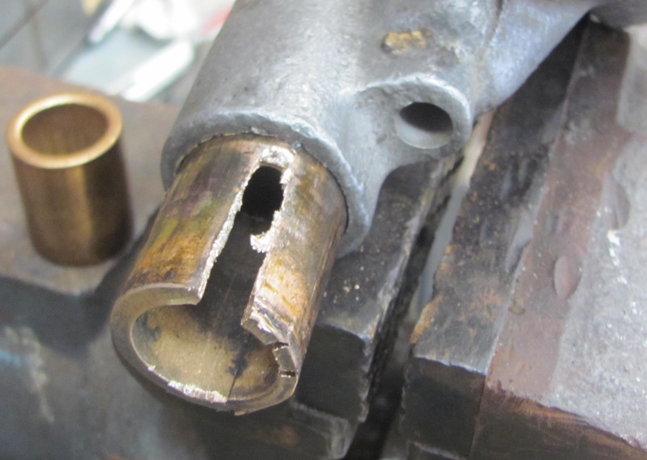 I'll take the burrs off the upper bush-less section. What should that measure? Just minimally ream it? So, the grease can pass? Should the lower bushing be cut or 'x'ed, to allow grease, or just team to fit the new column, and call it good?
