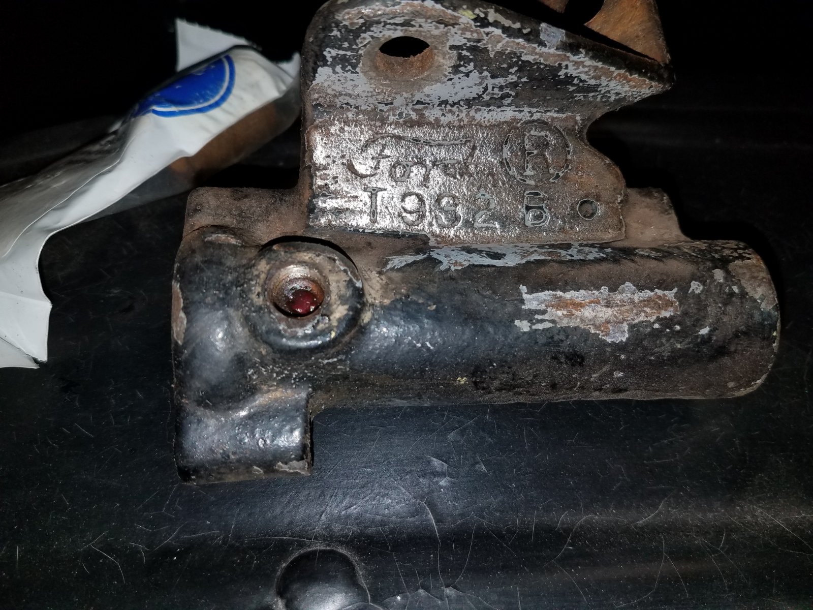 Looks like it's going back home to look at the shop manual again. My steering bracket is a Ford script T932B. after knocking the old bushing out it is obviously a way different bushing than the t 3545 c steering bracket bushings I got. The one pulled out is about 7/8 diameter OD, and the requisite 3/4 ID. The bushings I have are 1 in diameter OD, with 3/4 ID. So, looks like I need the t 3545 b2 bushings for a 26-27??